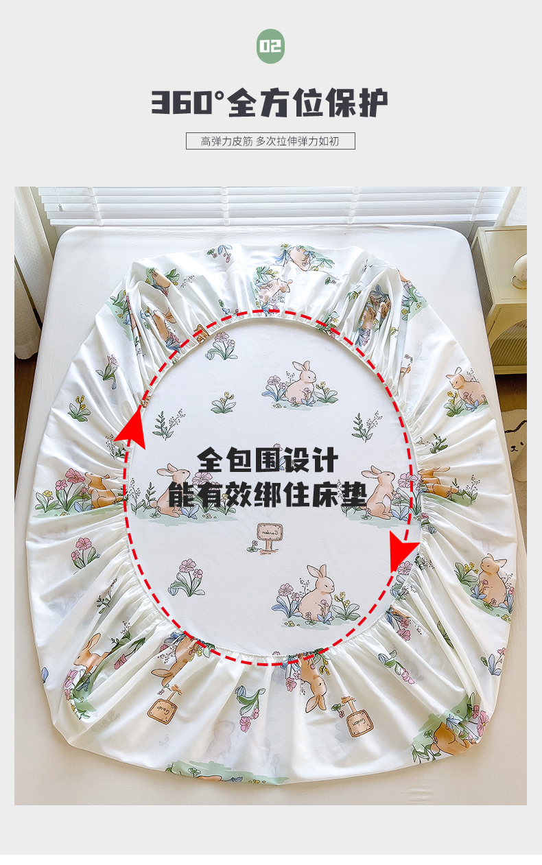 商品名称:芃成家纺 2023新款全棉13070单床笠 花园兔