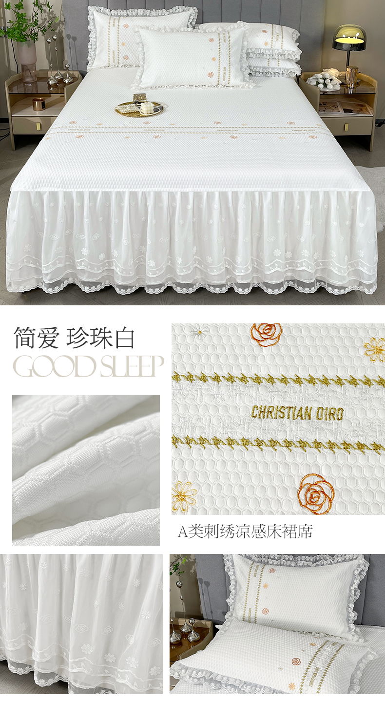 宜凡家纺2024新款A类蜂巢冰柠凉席床裙款三件套 简爱 珍珠白