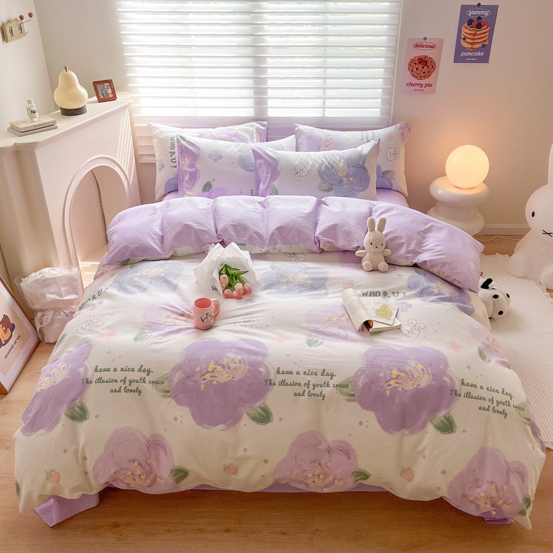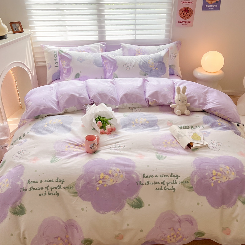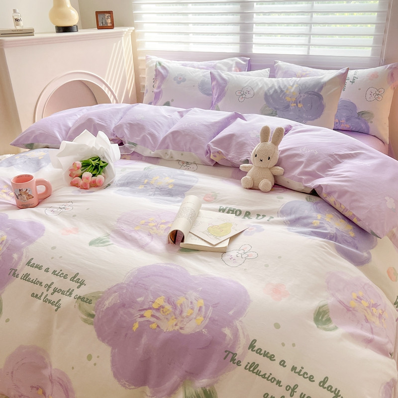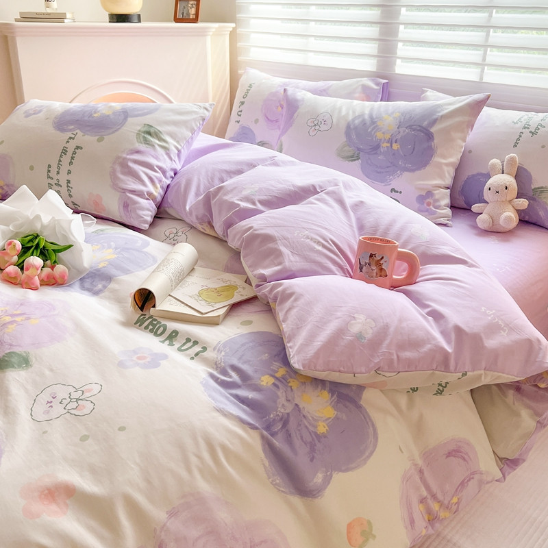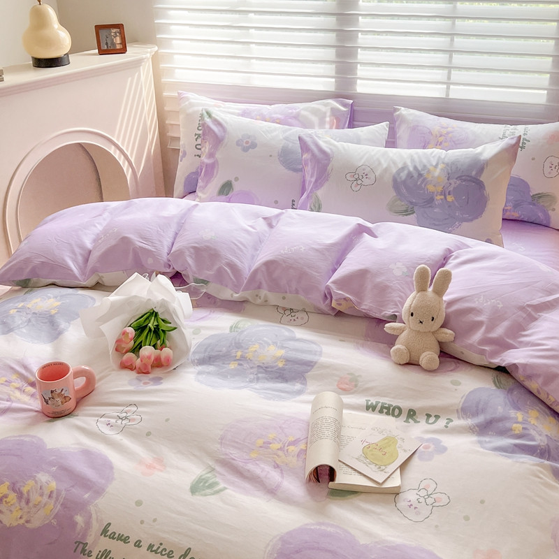 商品名称:顾里 2023新款40支13372全棉四季款韩系氛围四件套 紫雾花园