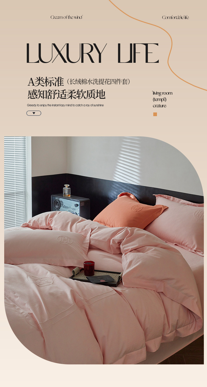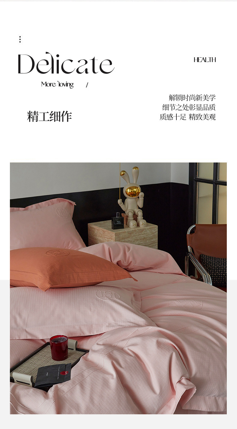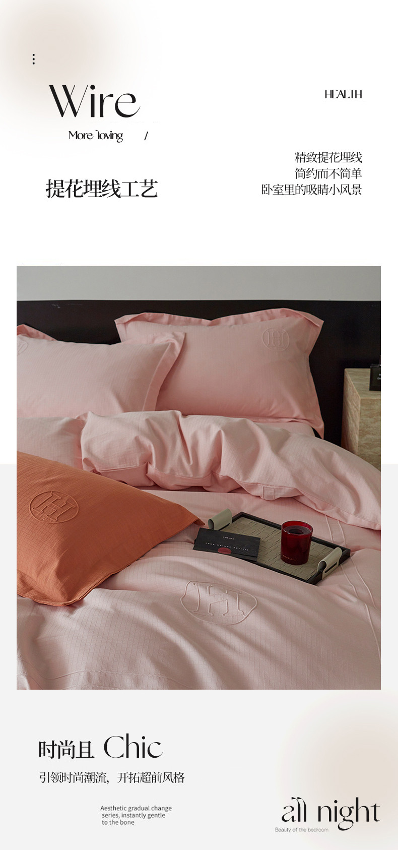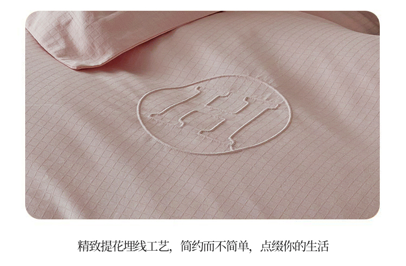 艾莱家纺 2023新款A类长绒棉水洗80提花埋线工艺款四件套艾华仕裸粉