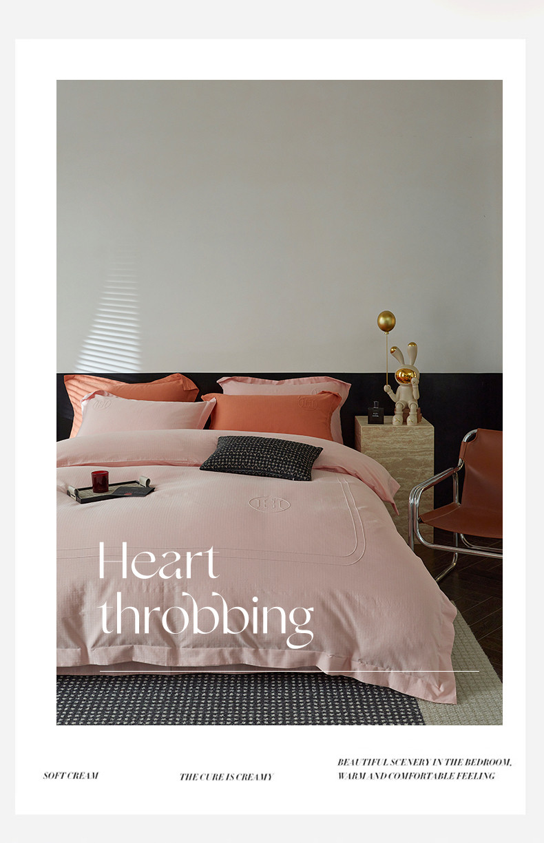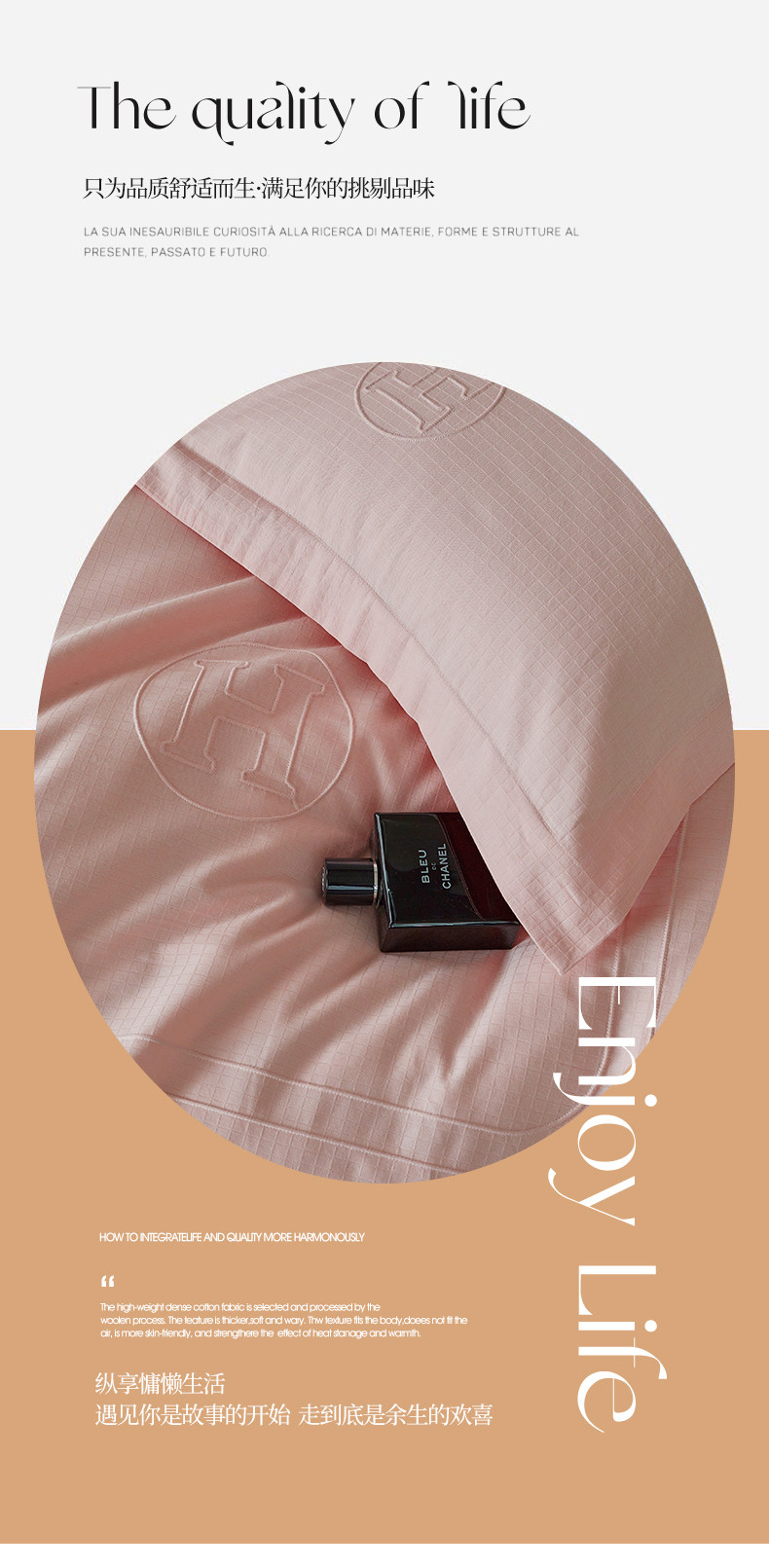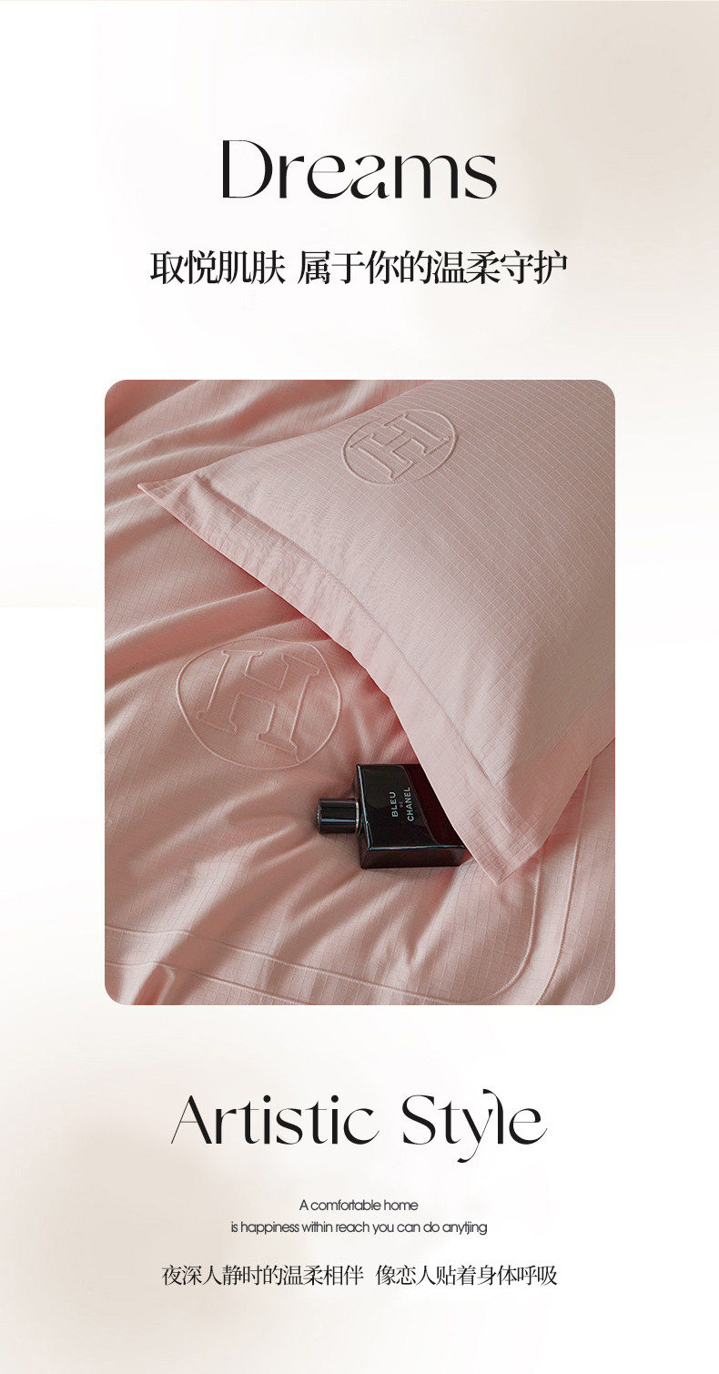 艾莱家纺 2023新款A类长绒棉水洗80提花埋线工艺款四件套艾华仕裸粉