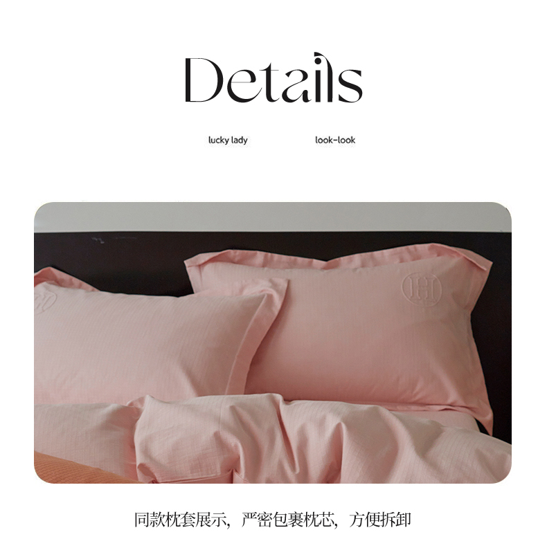 商品名称:艾莱家纺 2023新款A类长绒棉水洗80提花埋线工艺款四件套艾华仕裸粉
