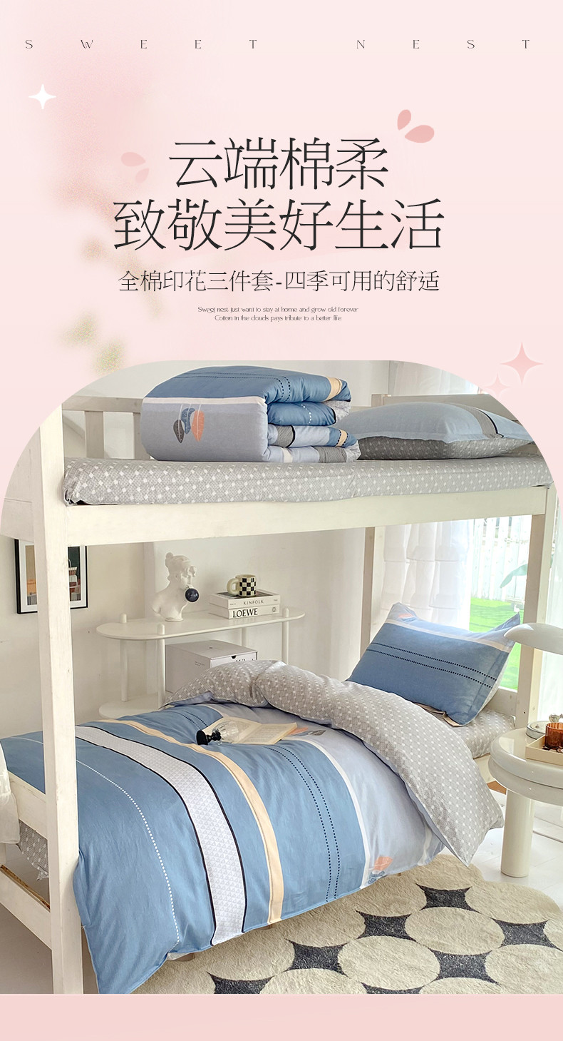 多品 2023新款12868全棉宿舍三件套-第二批 格彩丽景