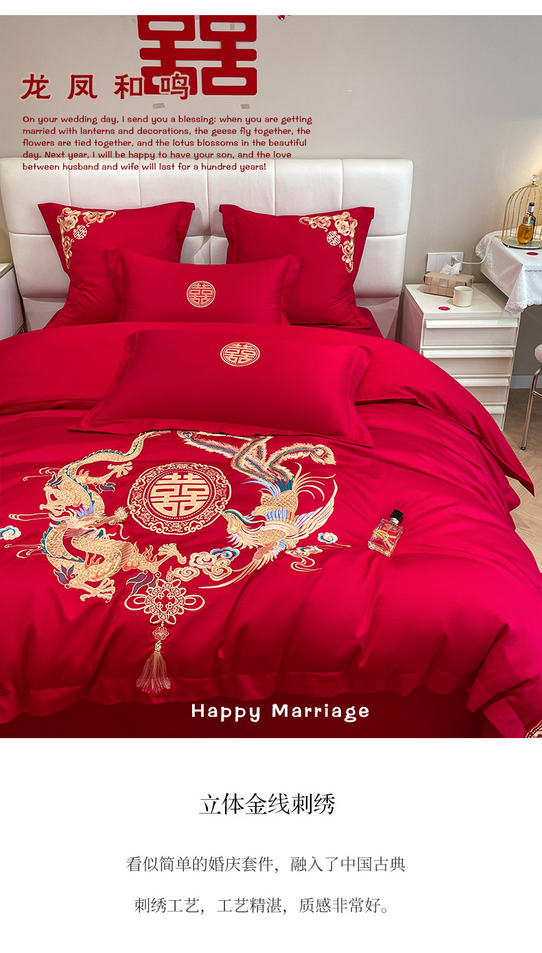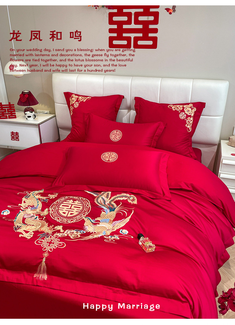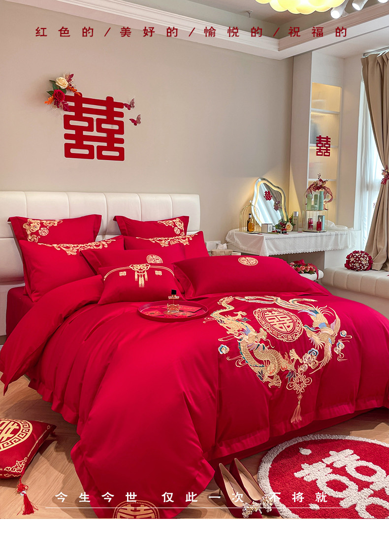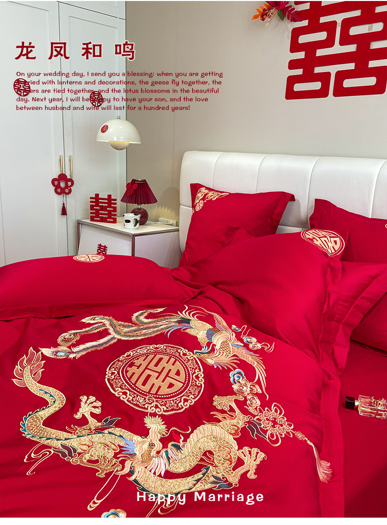 当前位置: 91家纺网 > 商品网购 > 床品套件 > 四件套 > 婚庆四件套 > 新款亲肤舒适时尚婚庆四件套系列 龙凤和鸣