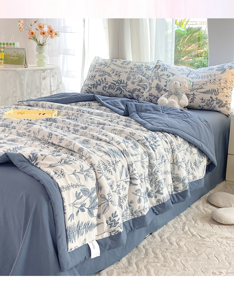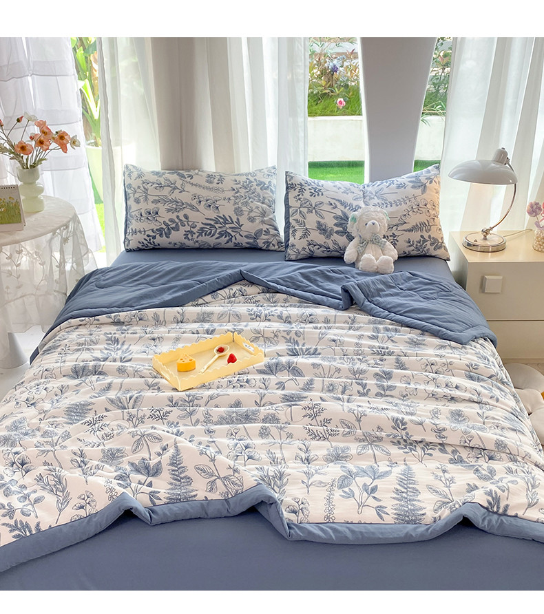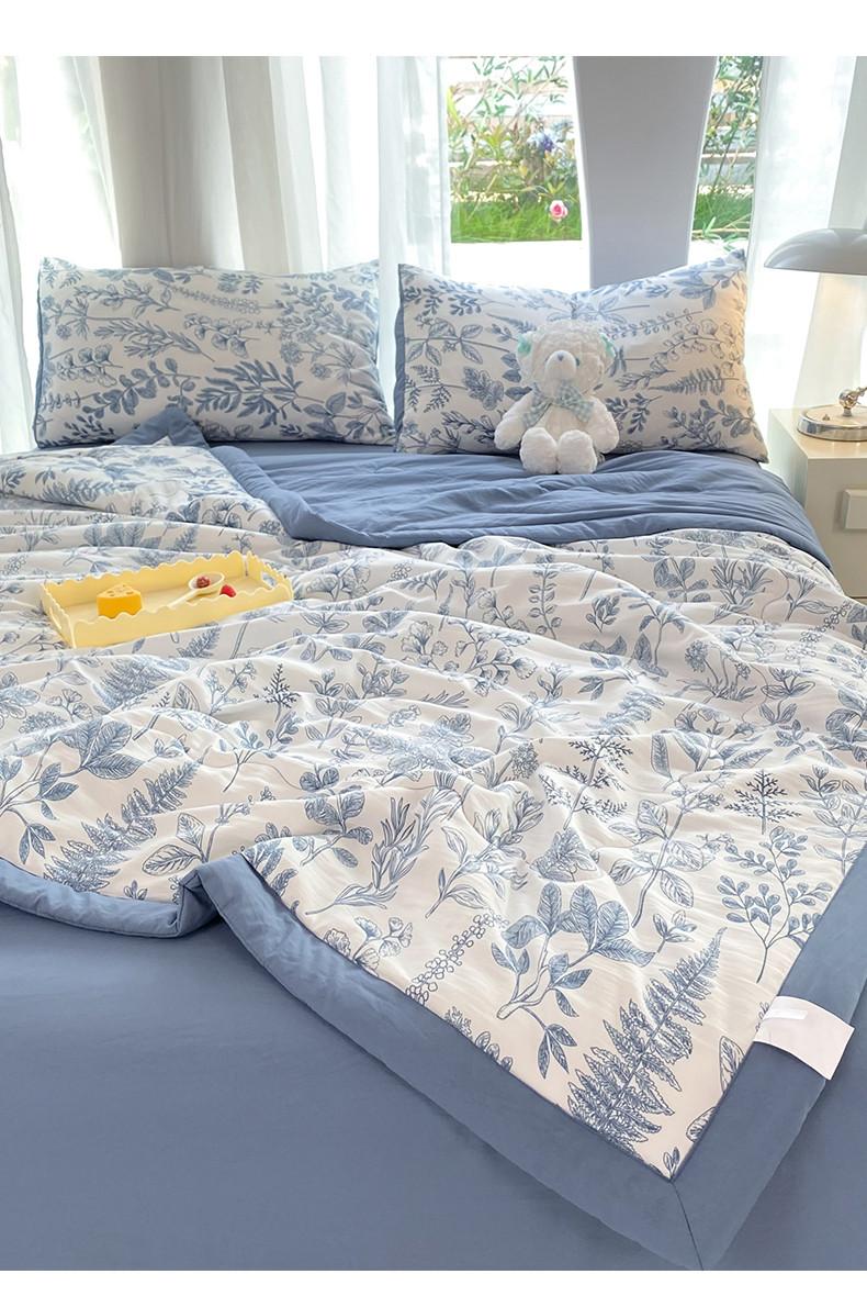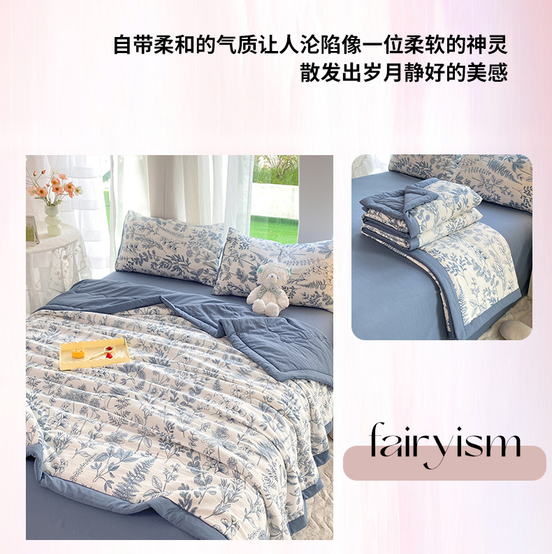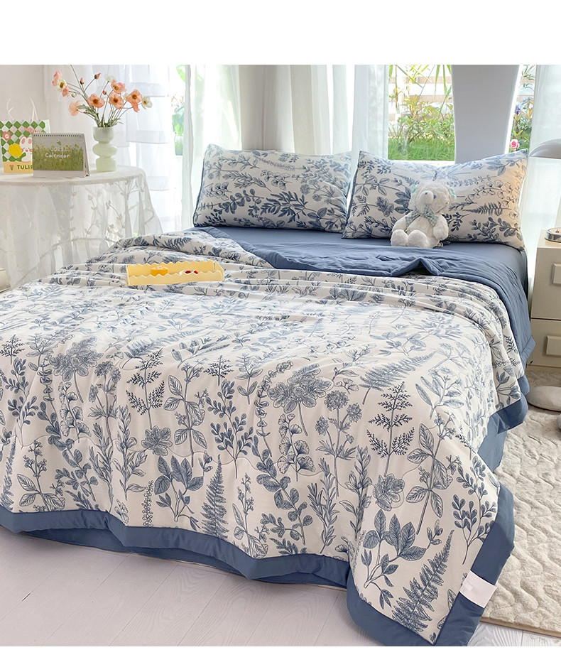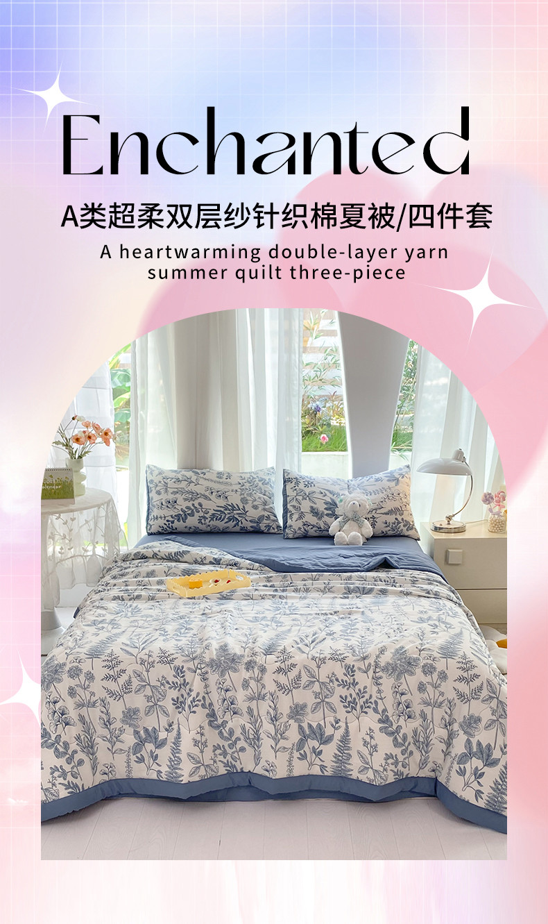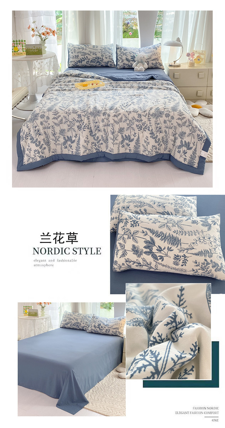 • 91家纺网 家纺一手货源 找家纺 慕尚家纺 2025新款A类超柔双层纱针织夏被四件套 兰花草