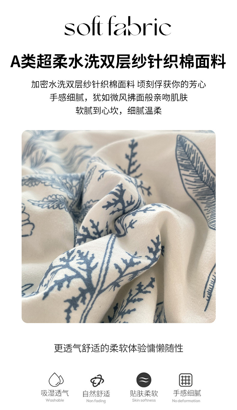 当前位置: 91家纺网 > 商品网购 > 被子 > 夏被 > 慕尚家纺 2025新款A类超柔双层纱针织夏被四件套 兰花草