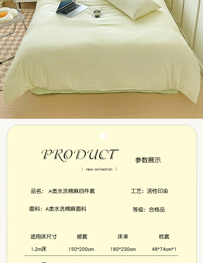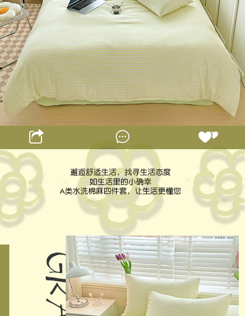当前位置: 91家纺网 > 商品网购 > 床品套件 > 四件套 > 棉麻四件套 > 优选良品202新款直播爆款无印风双层纱棉麻水洗棉麻四件套荧光绿条