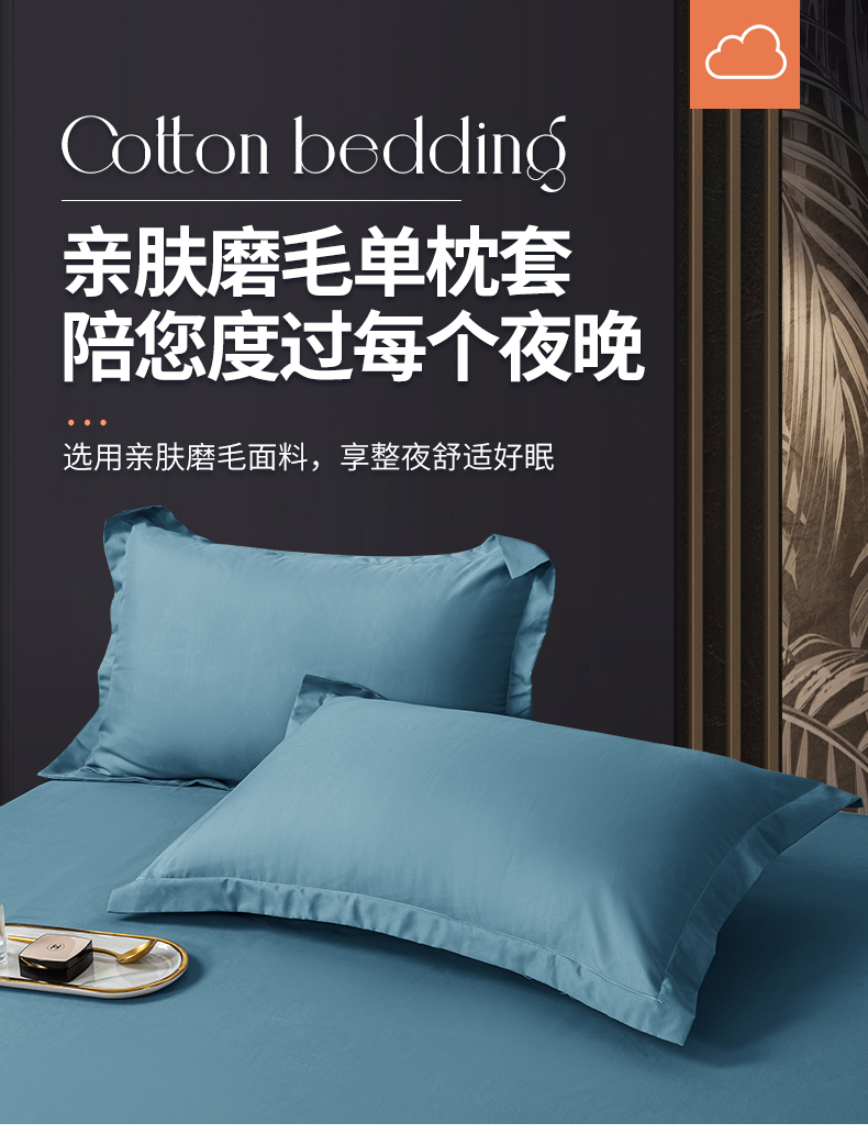 商品名称:恬澳家纺 2024新款亲肤磨毛单枕套系列-轻奢风 深海蓝