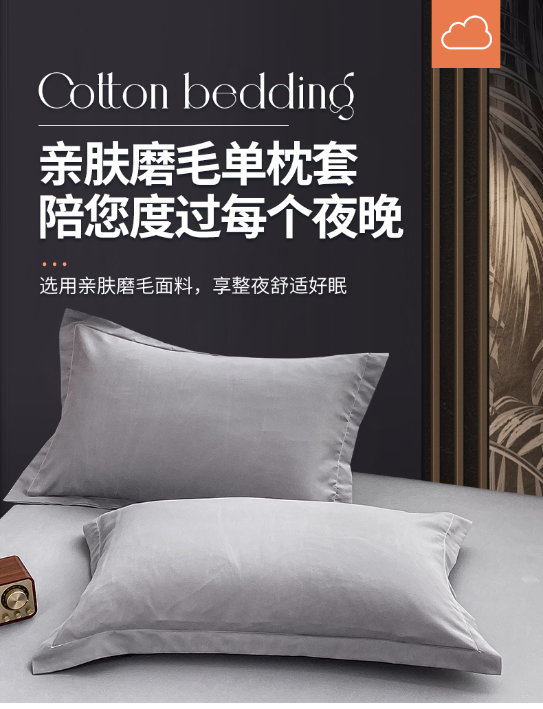 商品名称:恬澳家纺 2024新款亲肤磨毛单枕套系列-实拍风 优雅灰