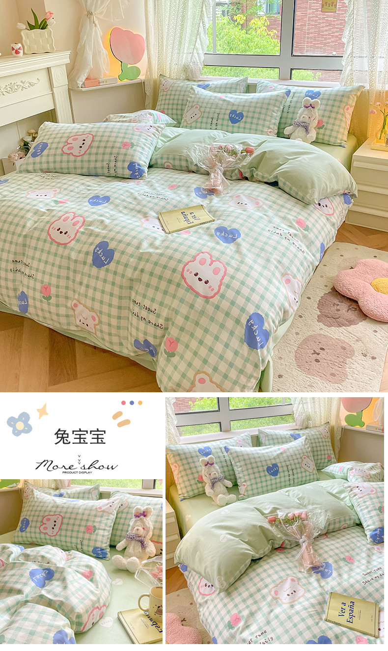 当前位置: 91家纺网 > 商品网购 > 床品套件 > 四件套 > 全棉普通四件套 > 麦伦家居 2023新款全棉斜纹卡通小清新系列四件套-第四波 兔宝宝