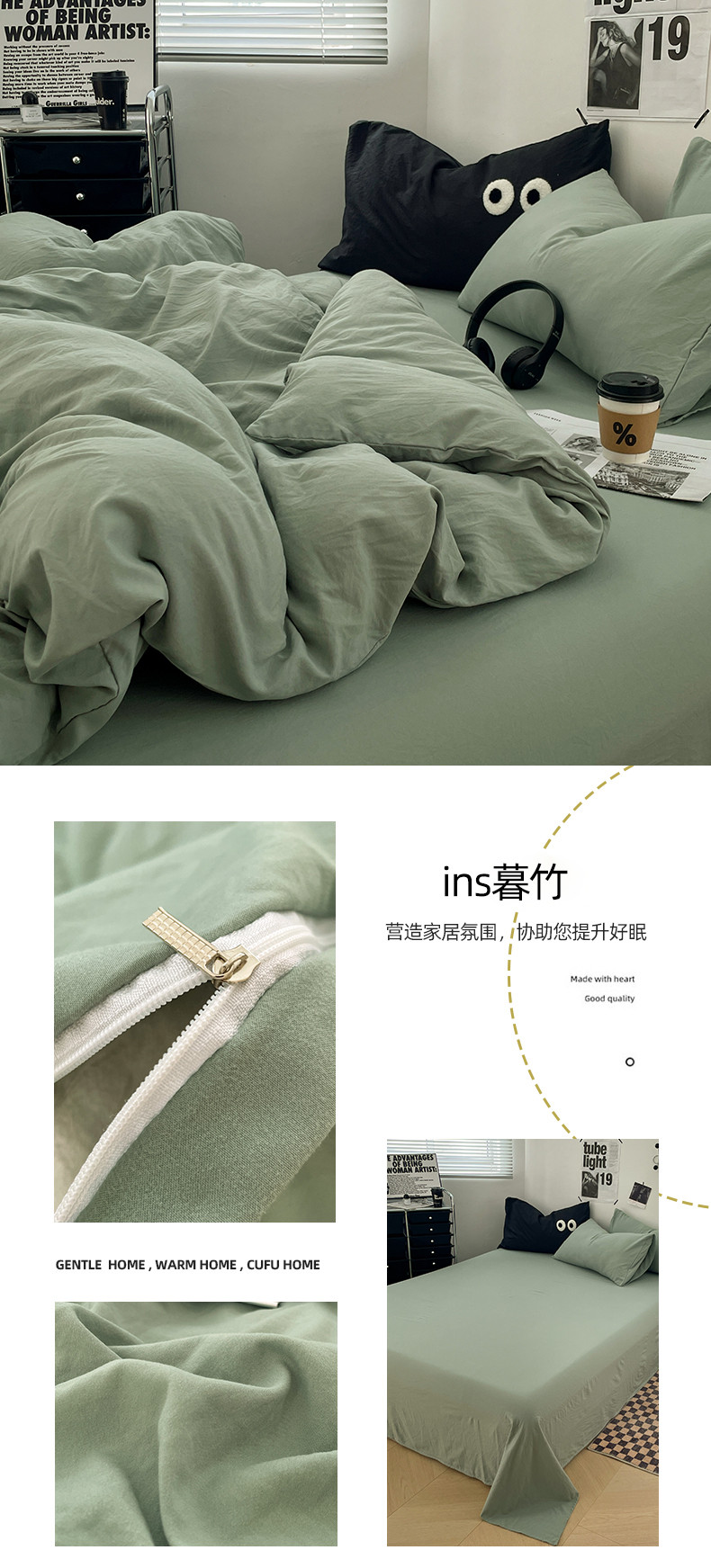 (总)贝拉梦家纺 2024新款褶皱炒鸡糯纯色水洗棉学生床三件套,风信紫,浩瀚蓝,焦糖,可可蛋奶,马卡龙蓝,莫奈灰,桃夭,庭芜绿,香草冰激凌
