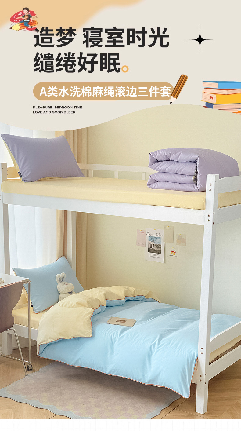 (总)眠帛2023水洗棉麻绳滚边芝士系列学生三件套六简套A类
