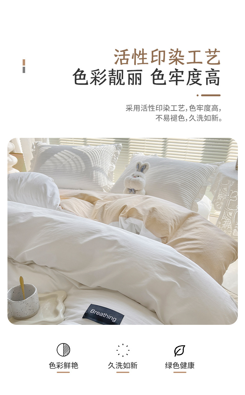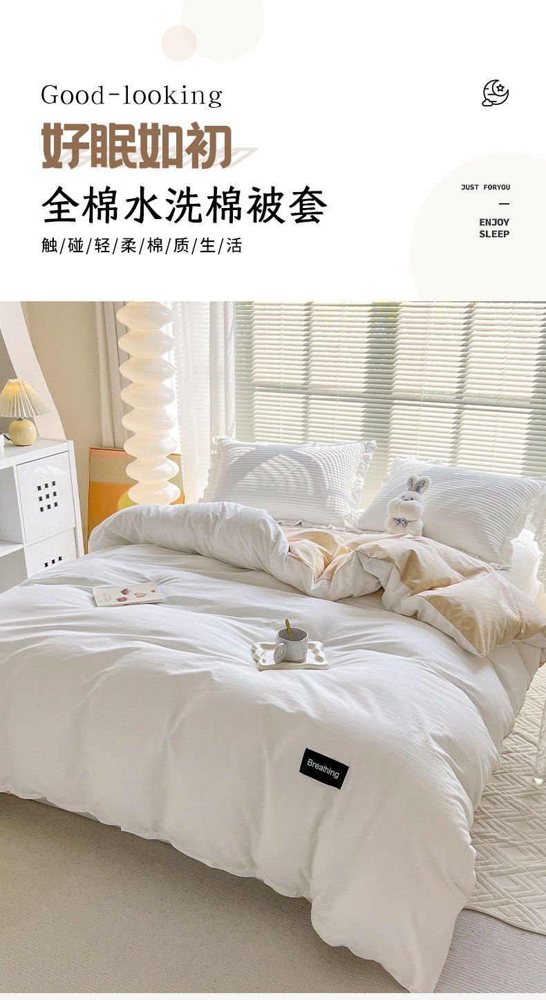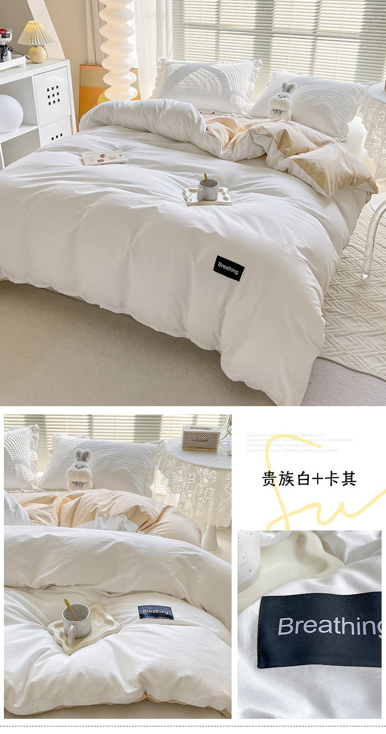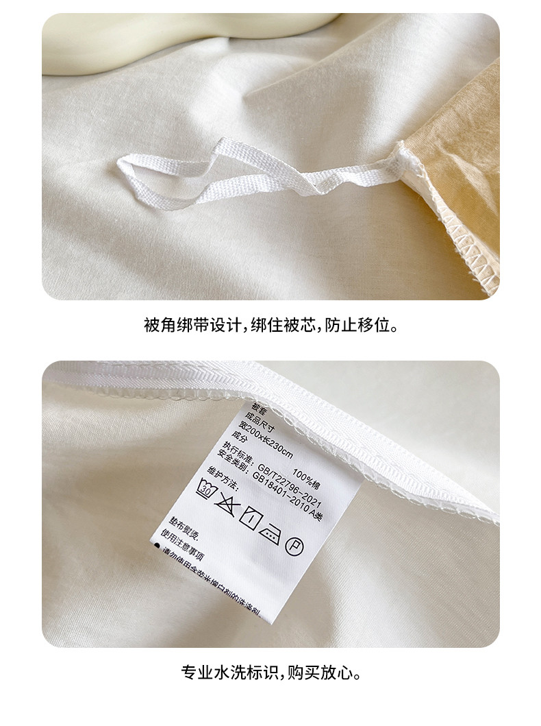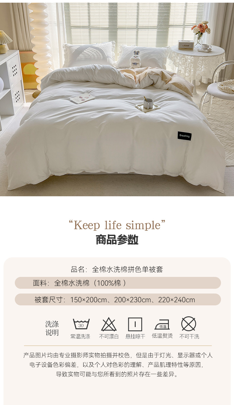 商品名称:绵庭家纺 2023新款全棉水洗棉拼色单被套 贵族白+卡其