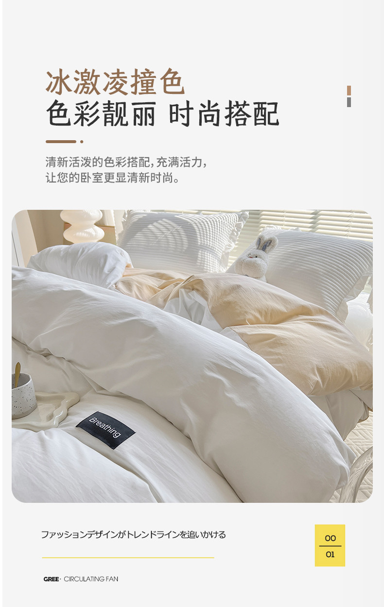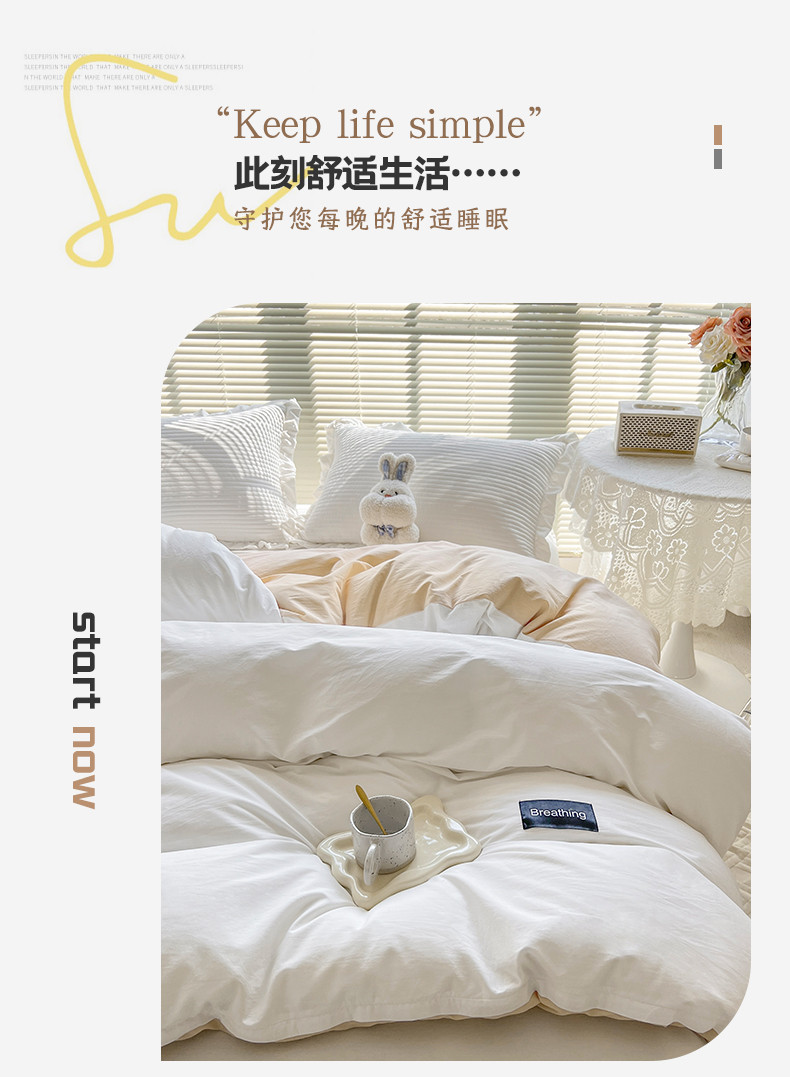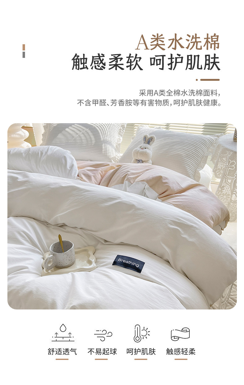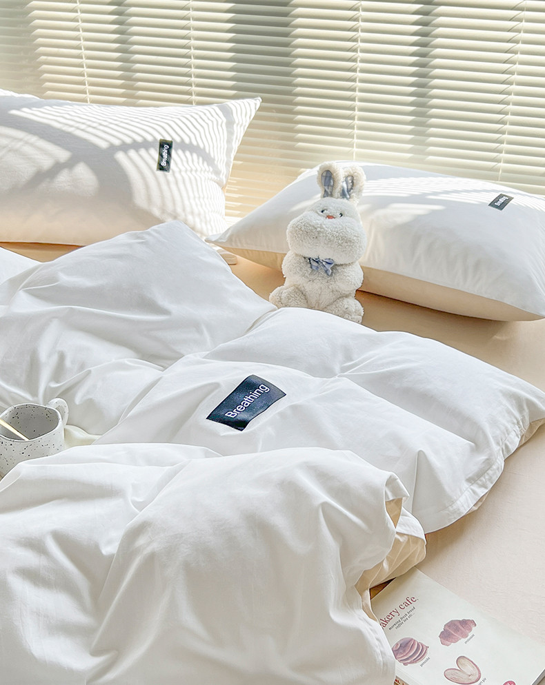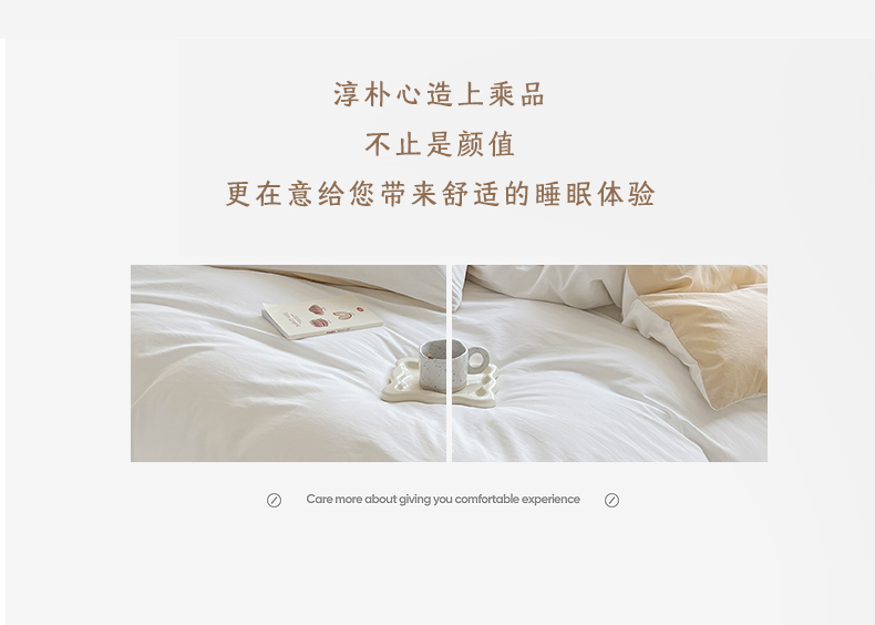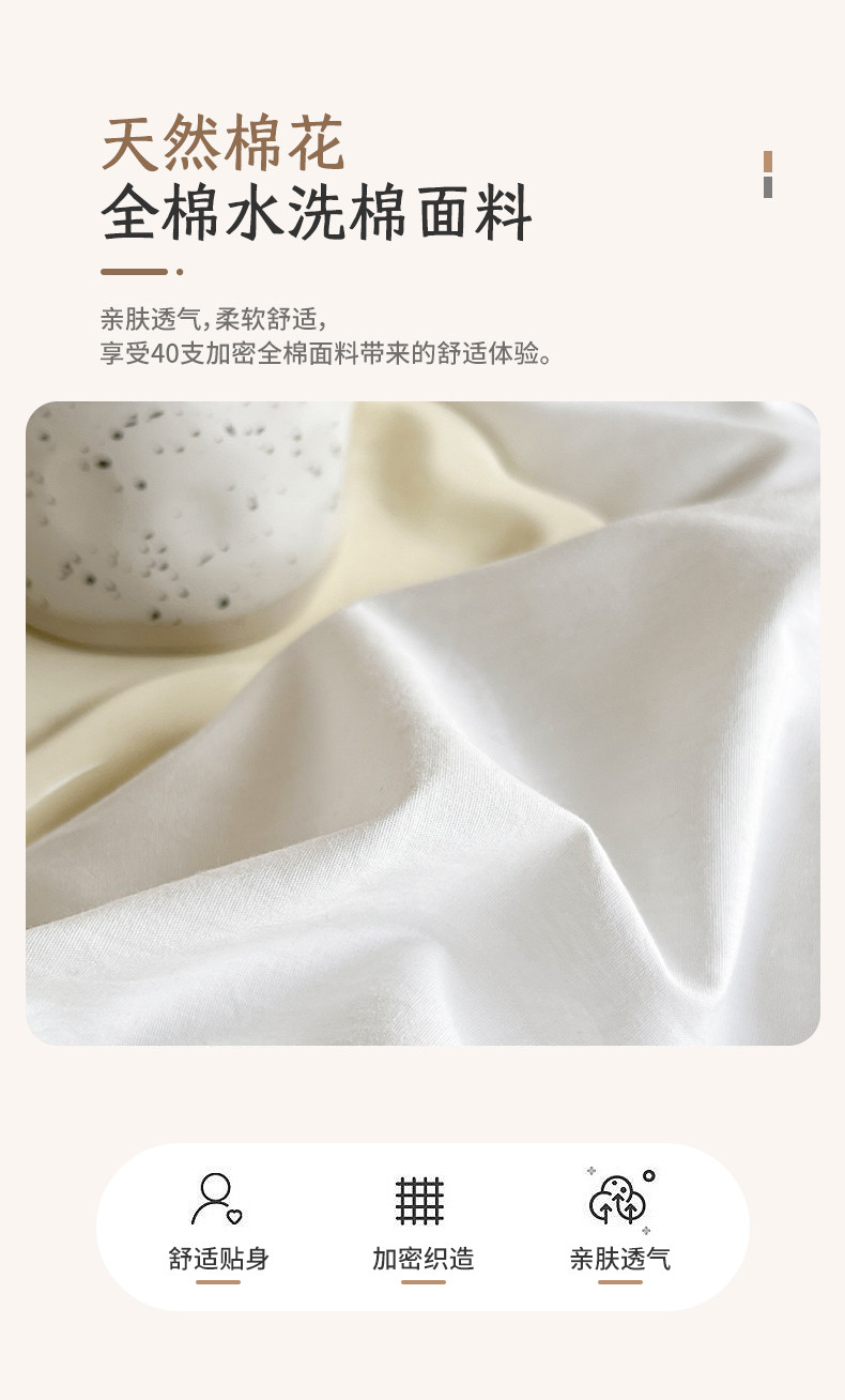 商品名称:绵庭家纺 2023新款全棉水洗棉拼色单被套 贵族白+卡其