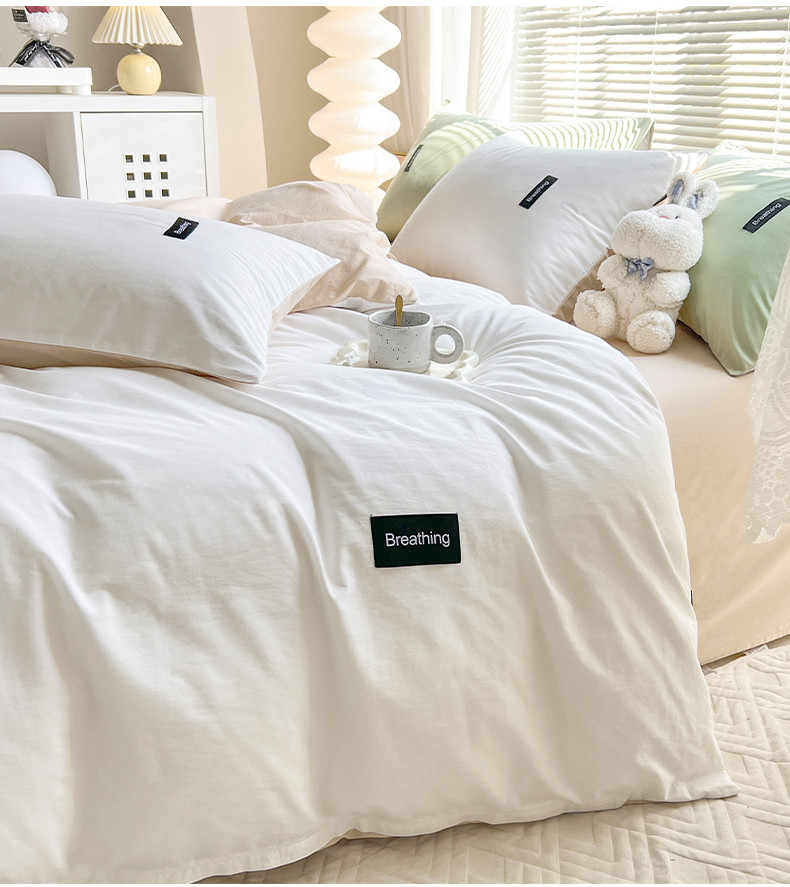 绵庭家纺 2023新款全棉水洗棉拼色单被套 贵族白+卡其