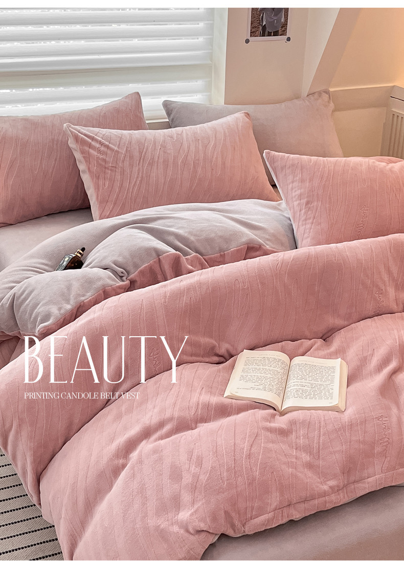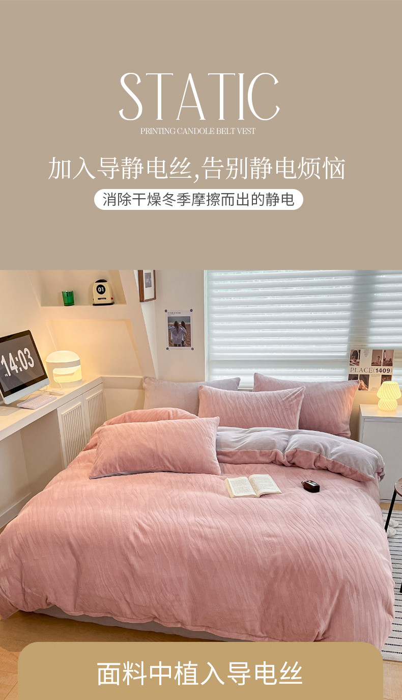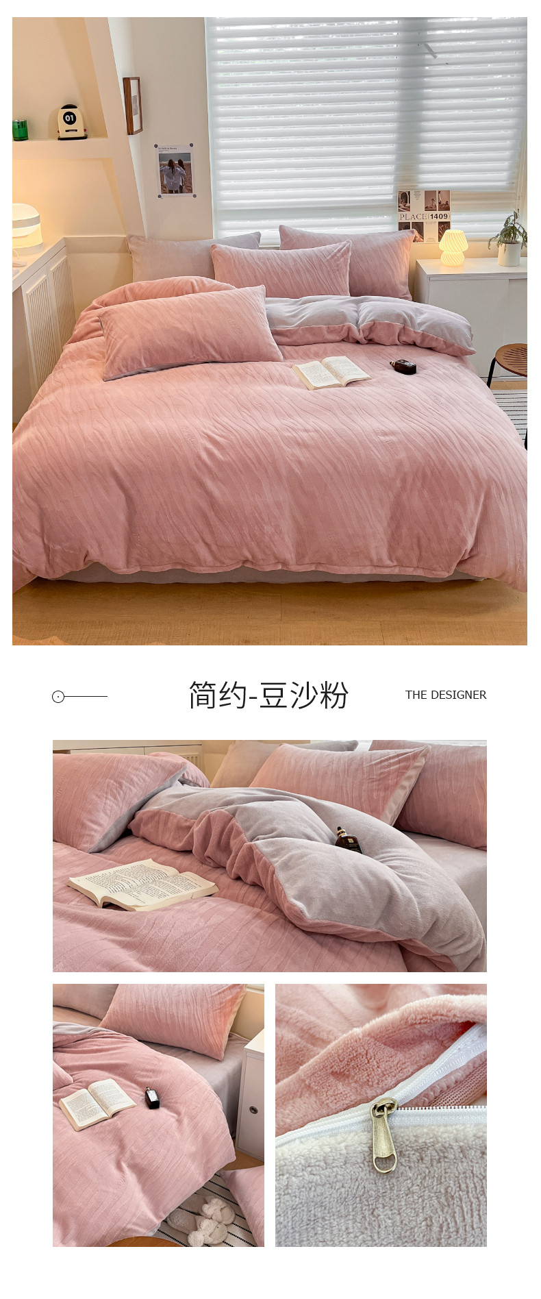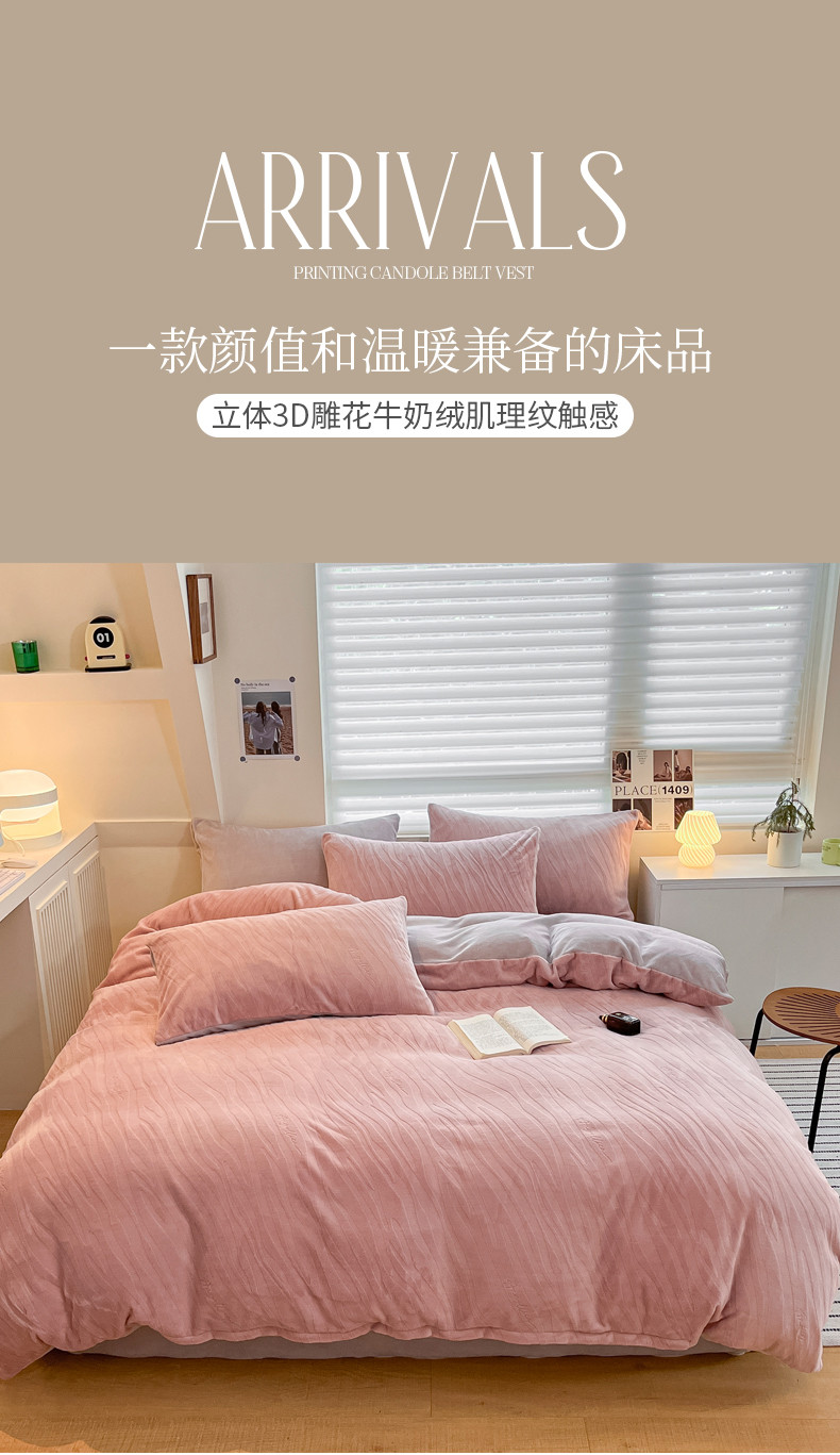 当前位置: 91家纺网 > 商品网购 > 床品套件 > 四件套 > 牛奶绒四件套 > 丝羽坊 2023新款高克重3D立体雕花提花牛奶绒四件套单被套 简约-豆沙粉