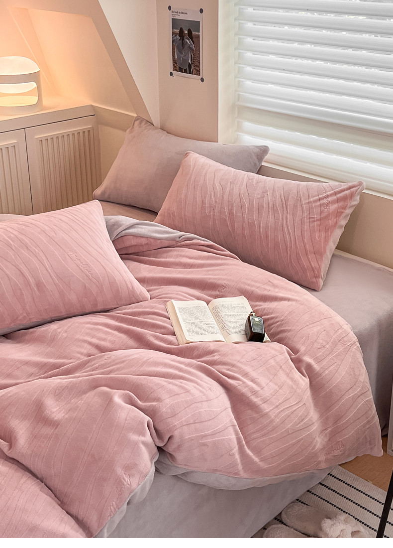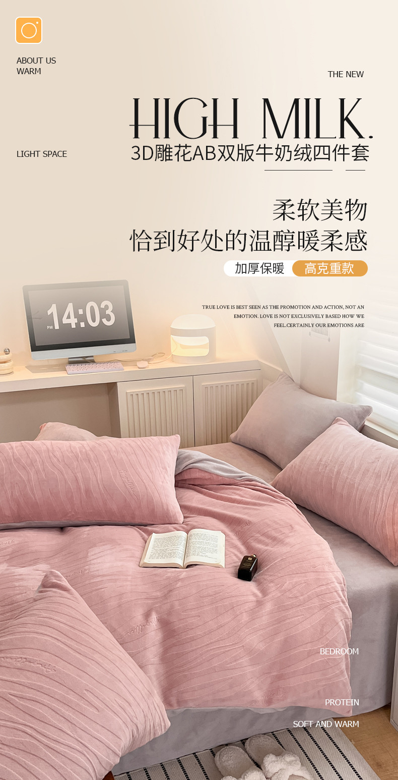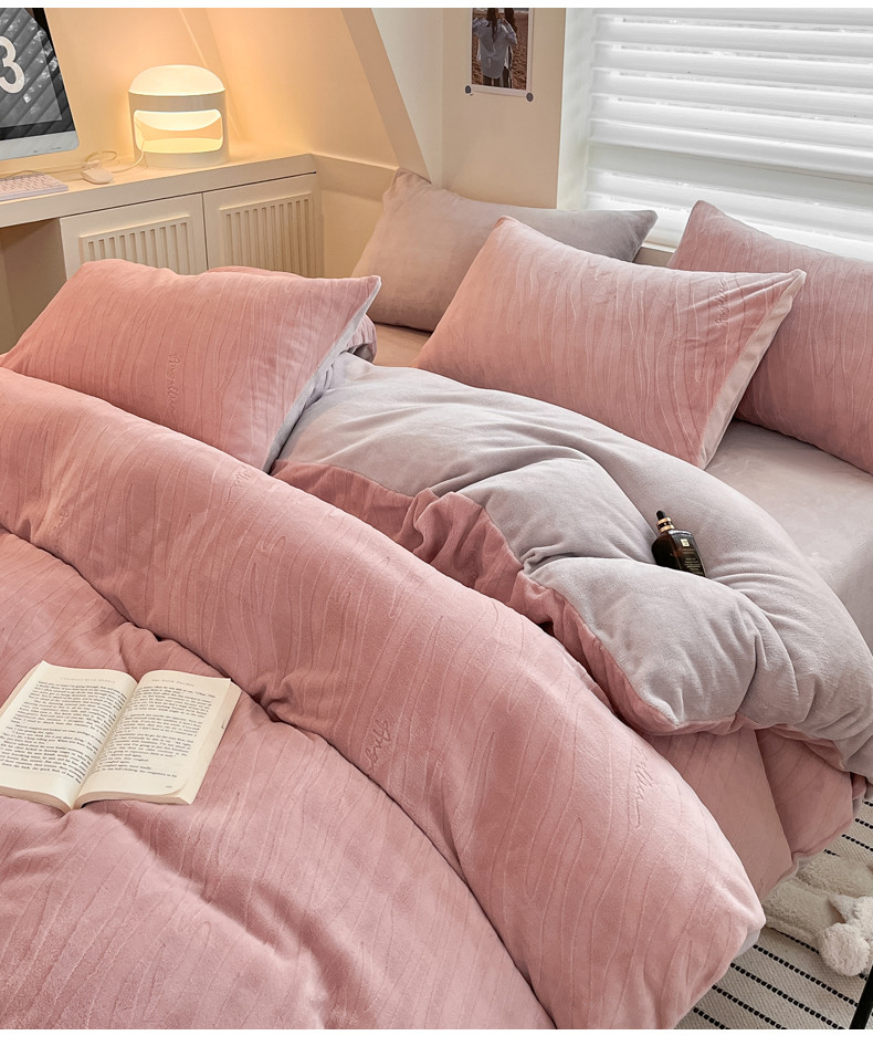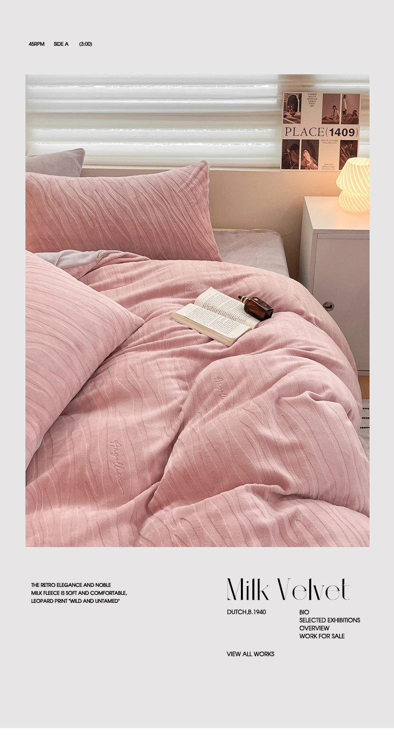 当前位置: 91家纺网 > 商品网购 > 床品套件 > 四件套 > 牛奶绒四件套 > 丝羽坊 2023新款高克重3D立体雕花提花牛奶绒四件套单被套 简约-豆沙粉