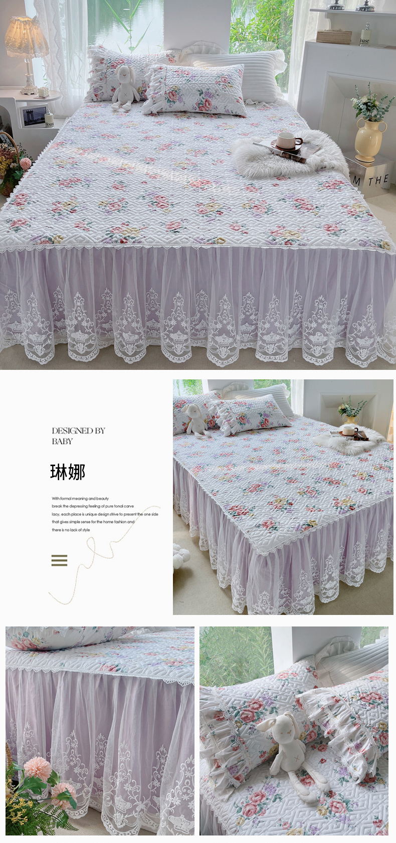 • 91家纺网 家纺一手货源 找家纺 菊上 2023新款秋冬新品宫廷风皇冠蕾丝全棉单品床裙系列 琳娜