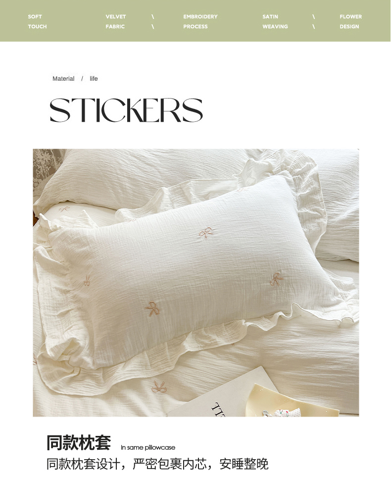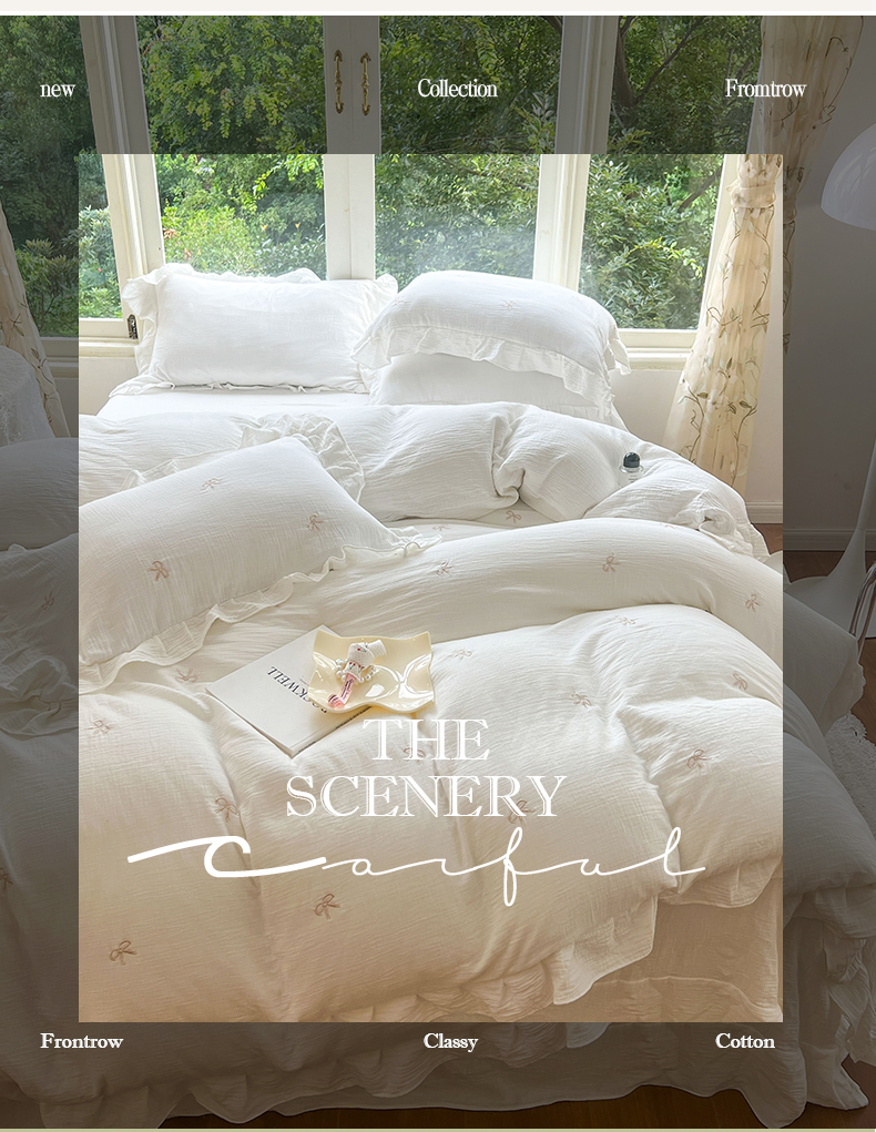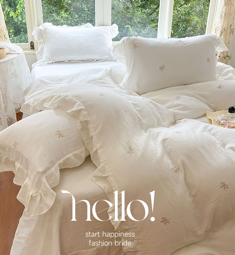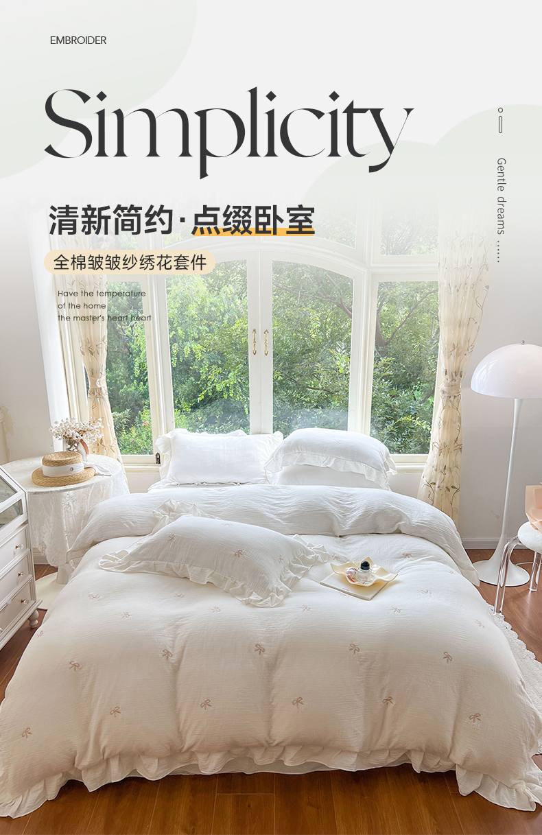 木楌家居 2024秋冬全棉皱皱纱荷叶边刺绣工艺款四件套 挽秋