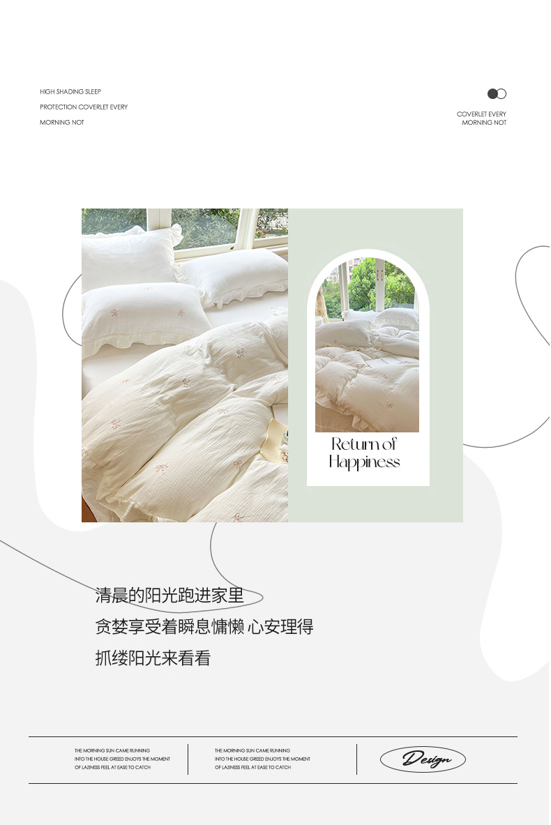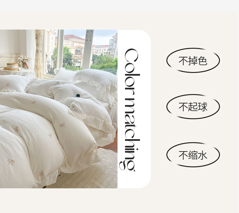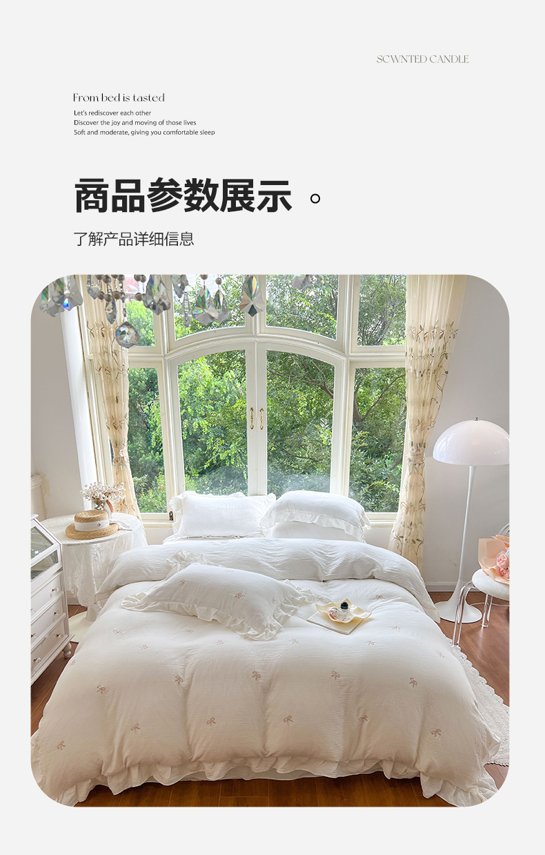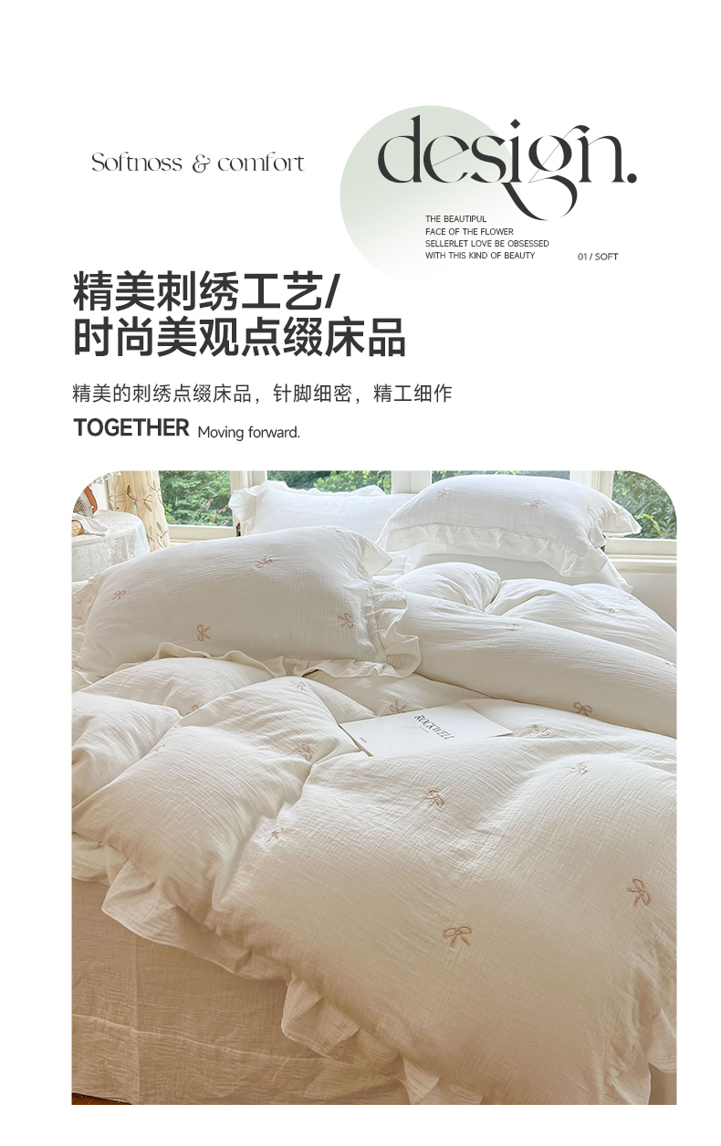 商品名称:木楌家居 2024秋冬全棉皱皱纱荷叶边刺绣工艺款四件套 挽秋