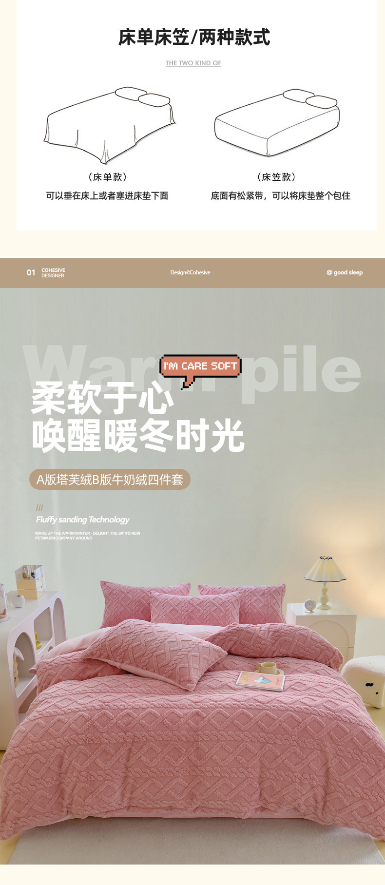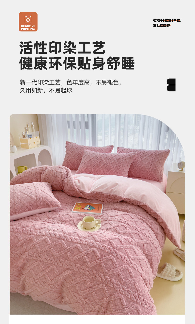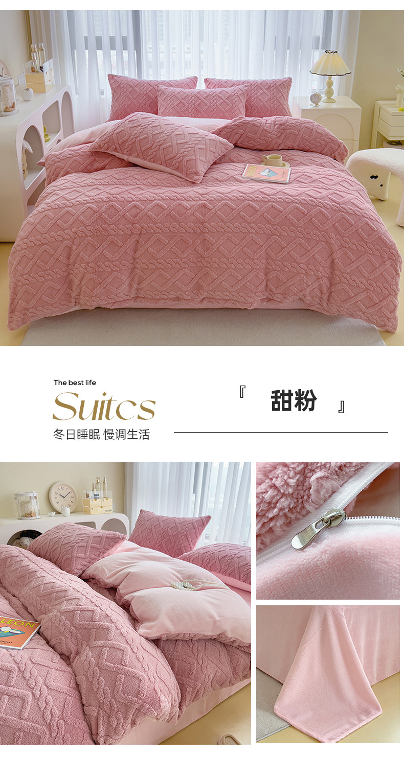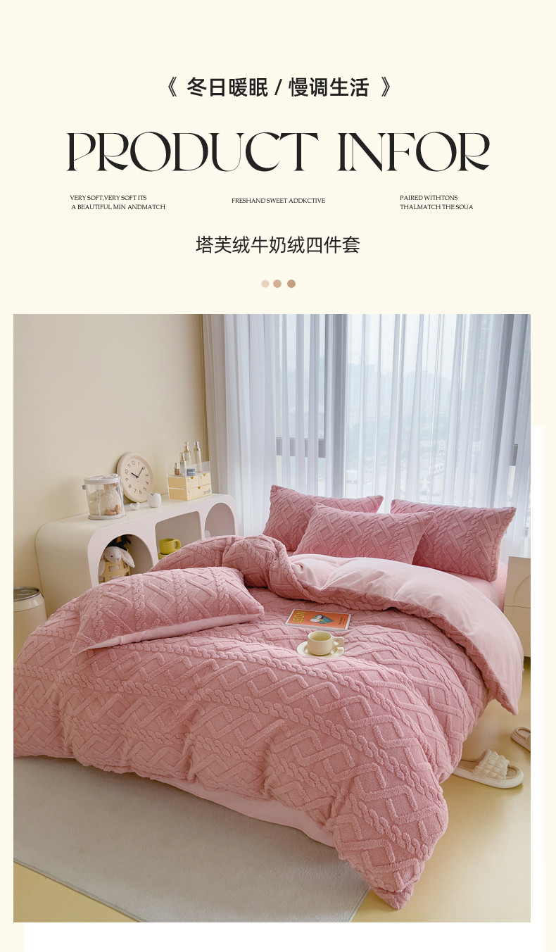 商品名称:绒世界 2024秋冬新款加厚塔芙绒简约款牛奶绒四件套 甜粉
