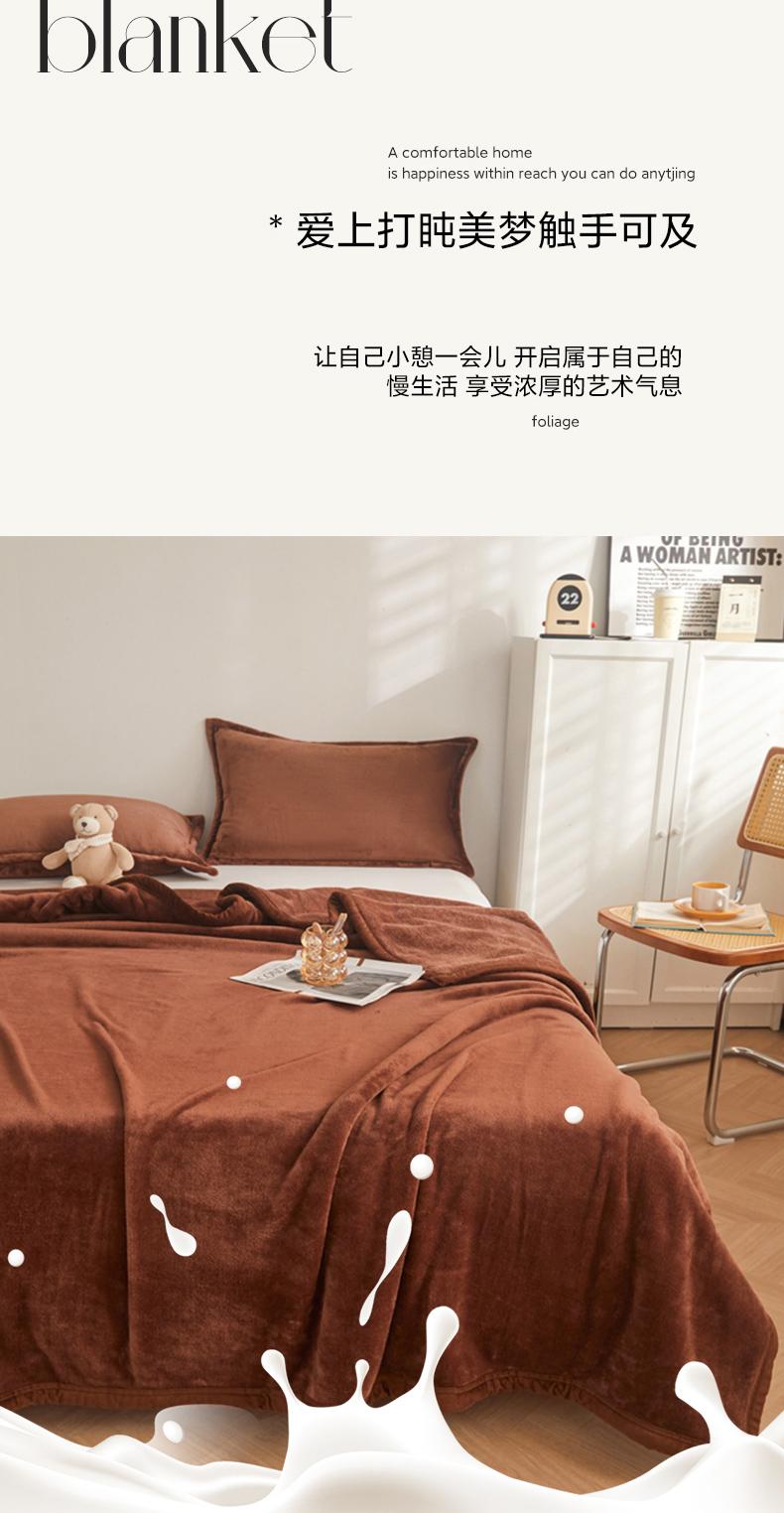 当前位置: 91家纺网 > 商品网购 > 毛毯休闲毯绒毯 > 毛毯 > 雅萱家纺 2023新款加厚牛奶绒多功能纯色毛毯 咖啡