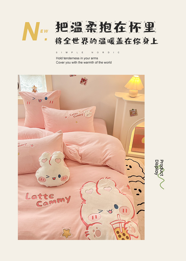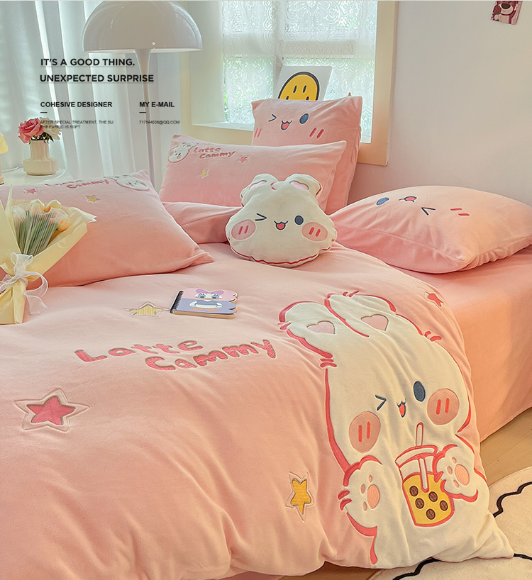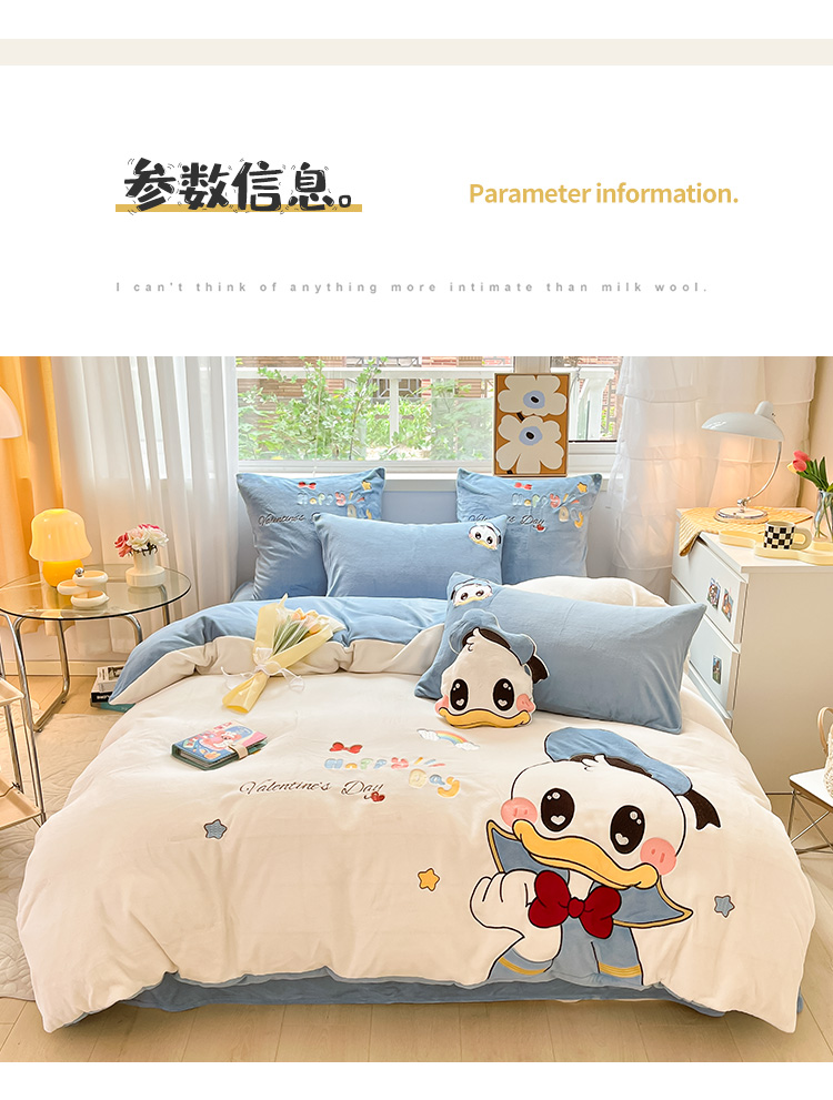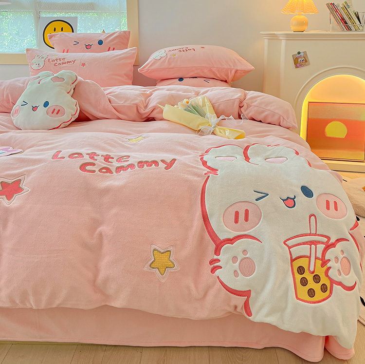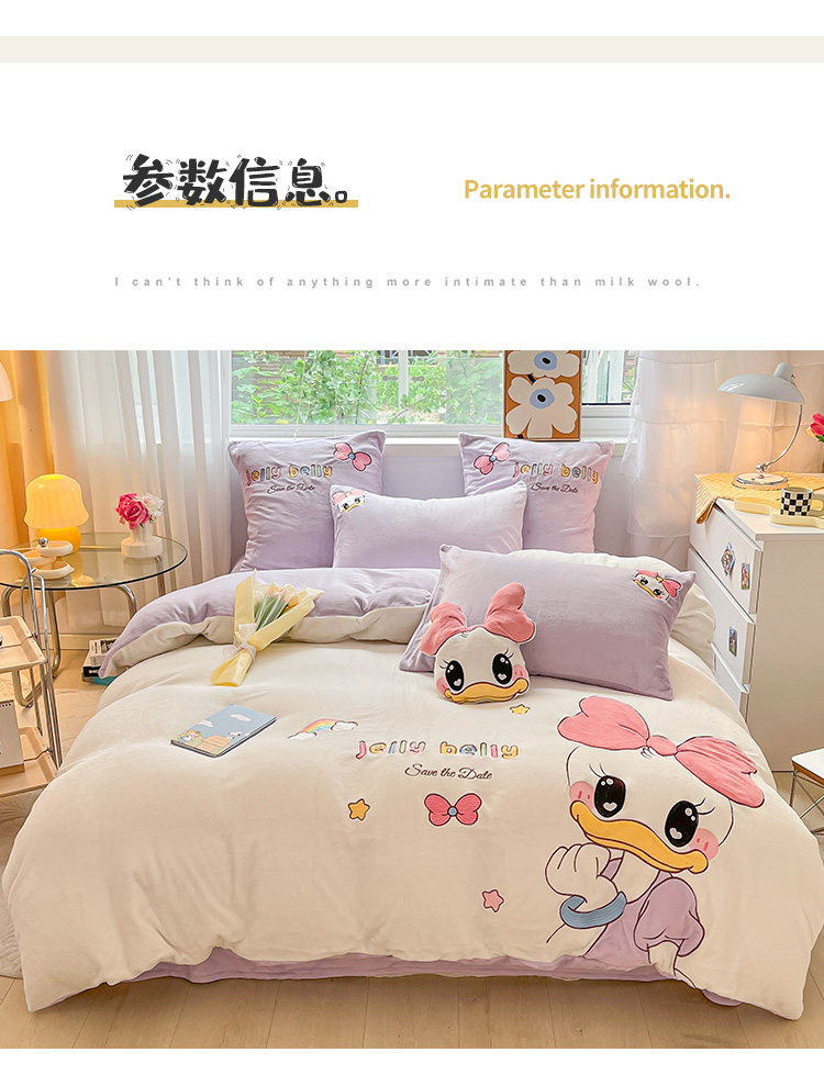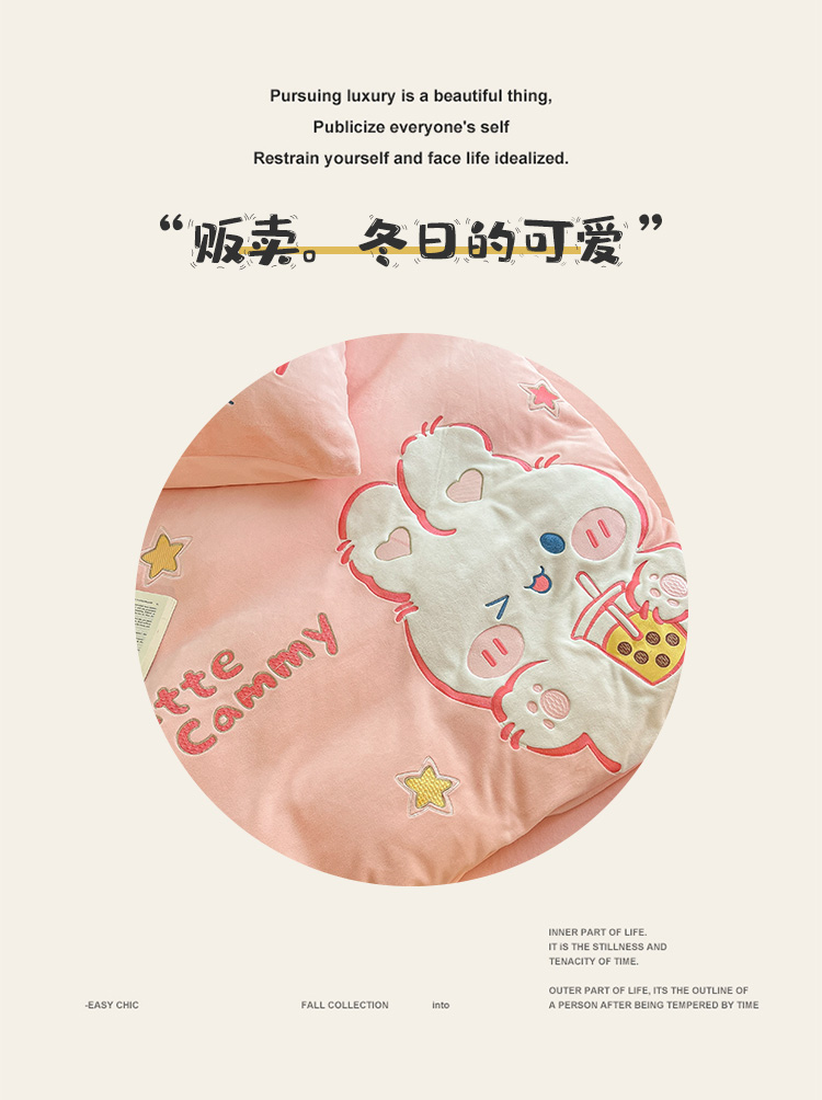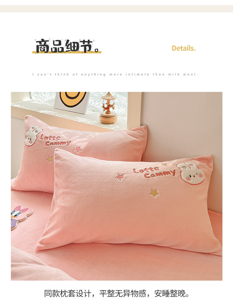 当前位置: 91家纺网 > 商品网购 > 床品套件 > 四件套 > 牛奶绒四件套 > 绒梦里 230g牛奶绒贴布绣花四件套加厚绒四件套儿童卡通三件套保暖套件