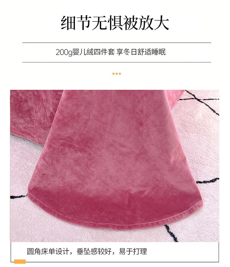 商品名称:慕希2024新款贝壳边婴儿绒牛奶豆豆绒提花保暖绒四件套 胖胖熊-粉