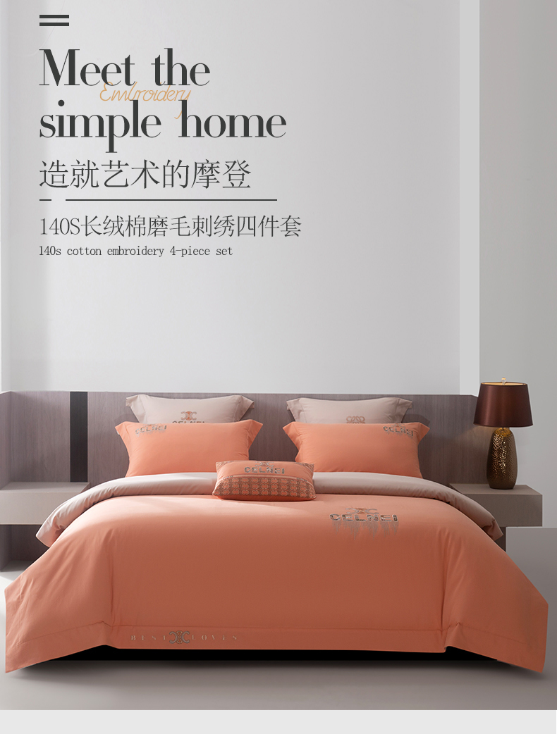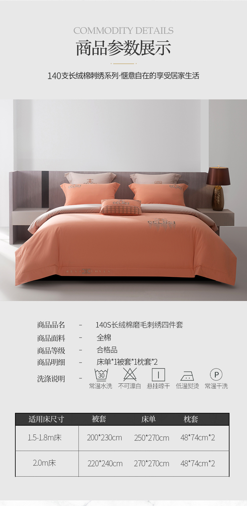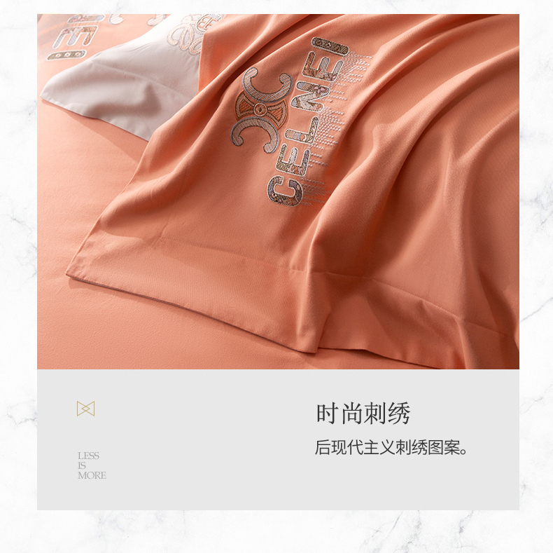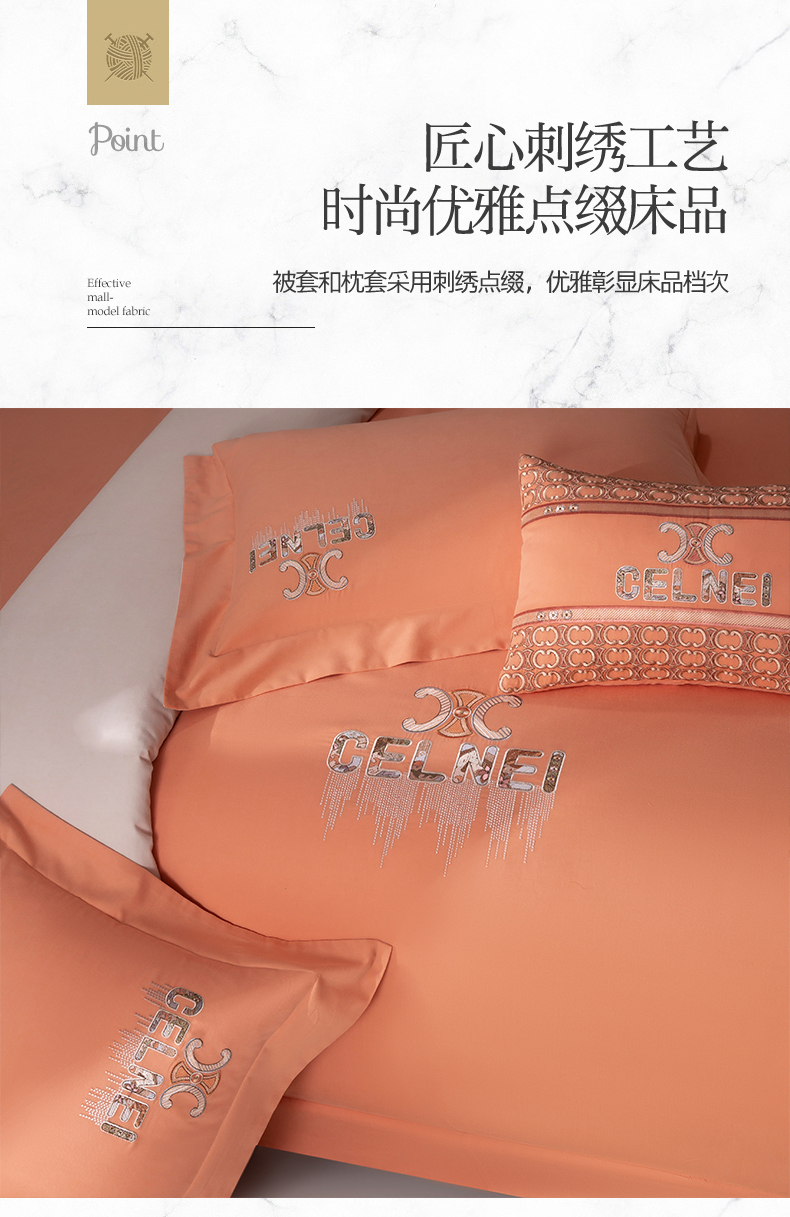 商品名称:高大尚 2023秋冬新品长绒棉磨毛高端绣花四件套-柯拉系列 爱玛橙