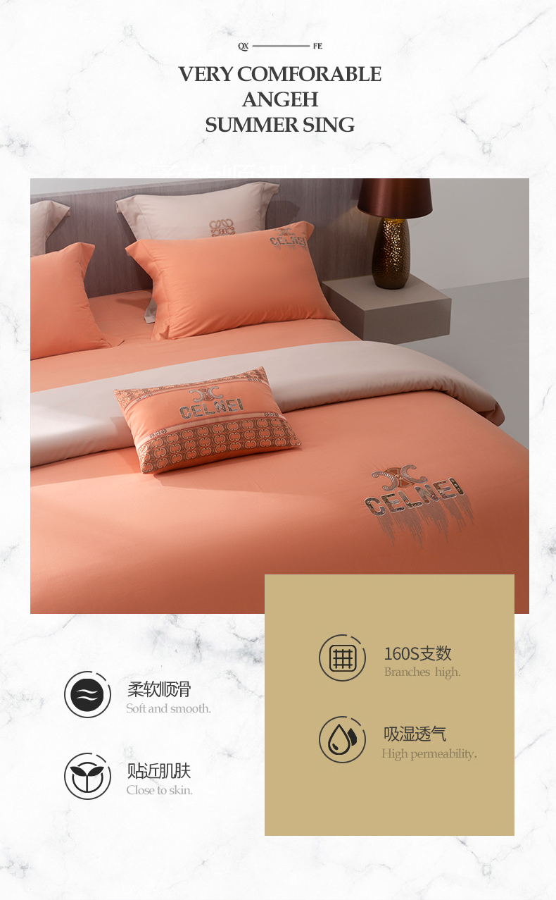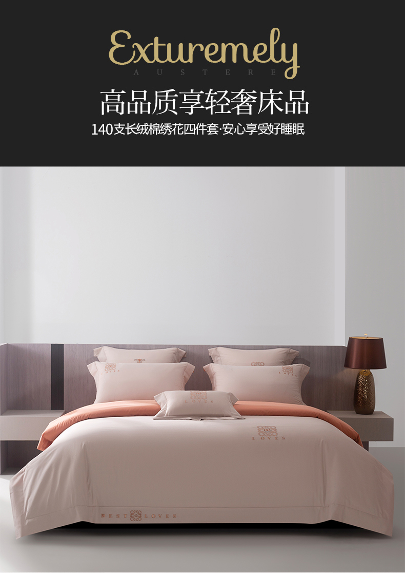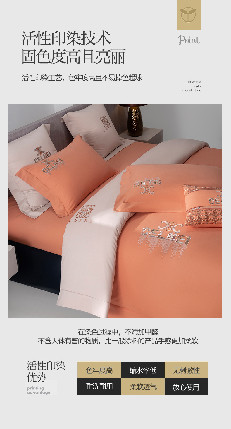 商品名称:高大尚 2023秋冬新品长绒棉磨毛高端绣花四件套-柯拉系列 爱玛橙