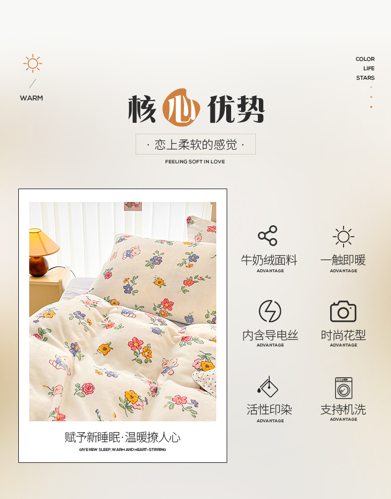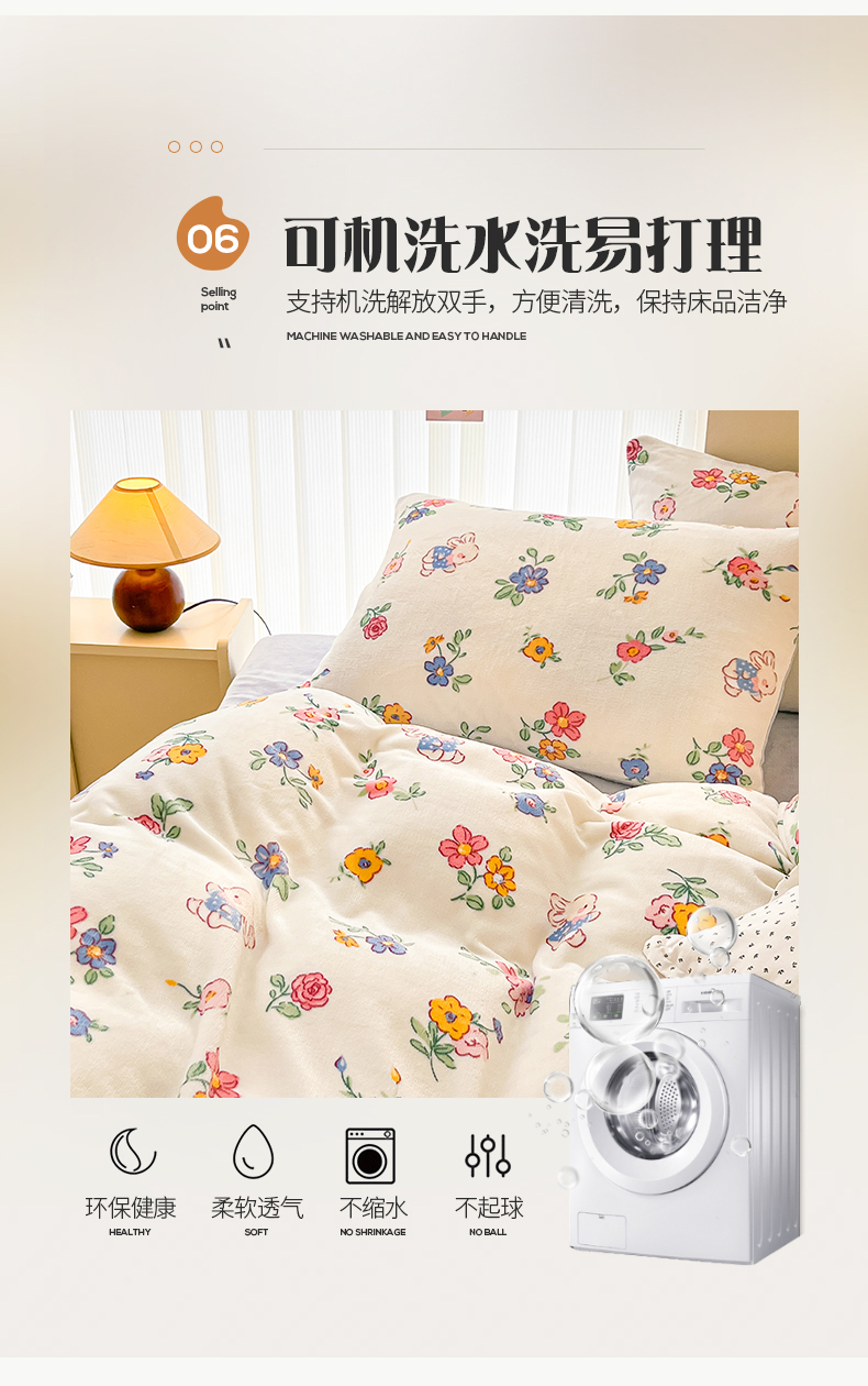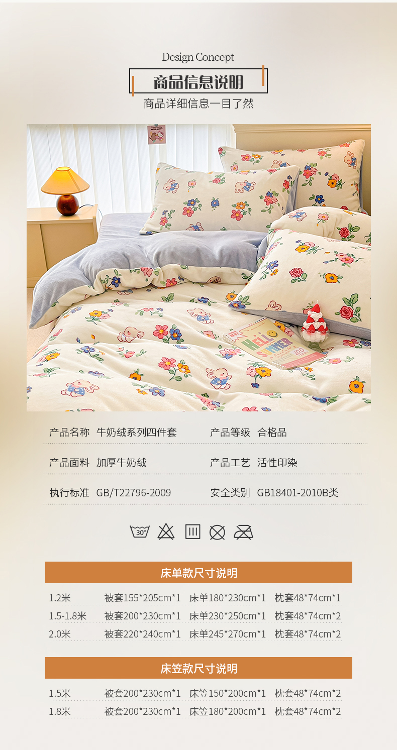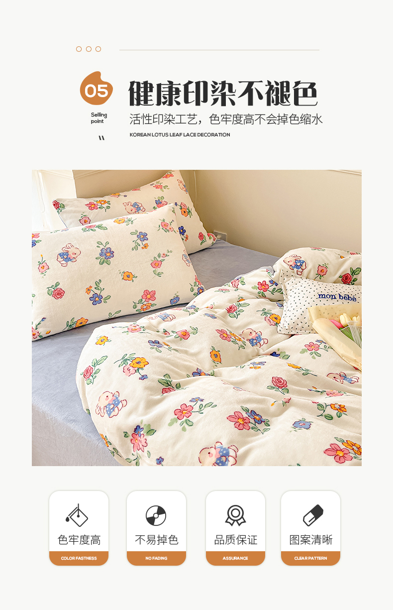 商品名称:桃子 2023新款ins小清新韩系卡通少女心奶油兔子加厚牛奶绒系列四件套-第一批 绒-花田兔