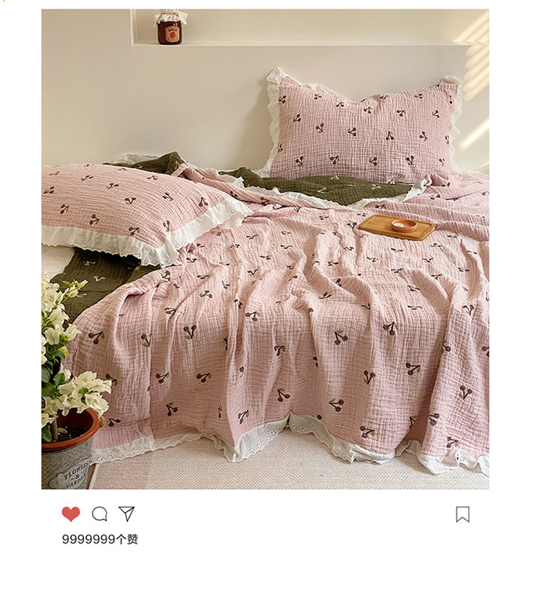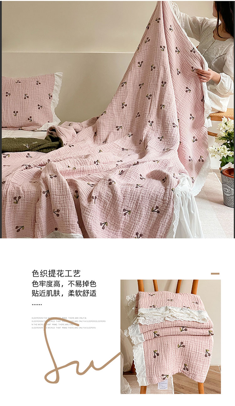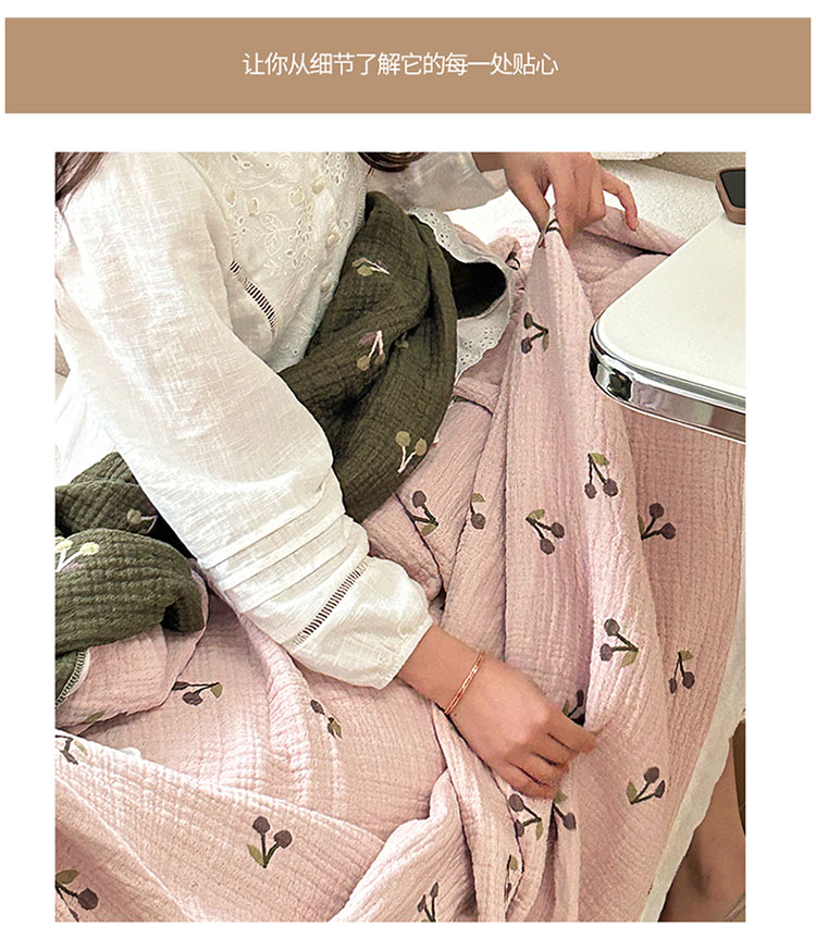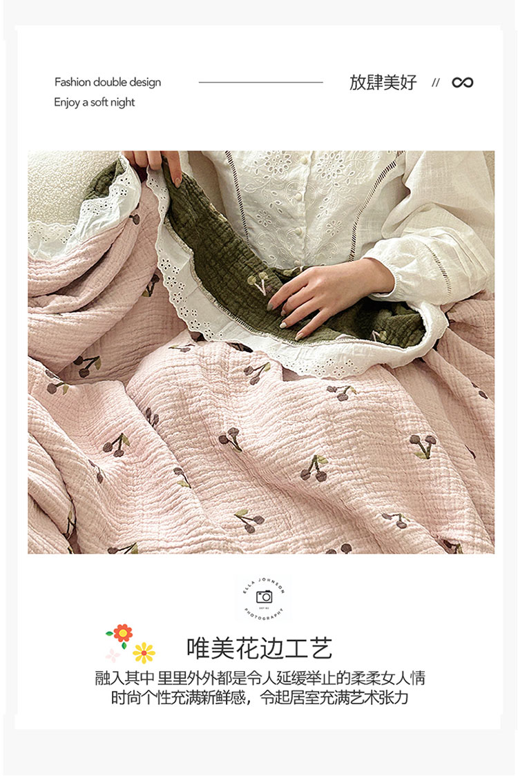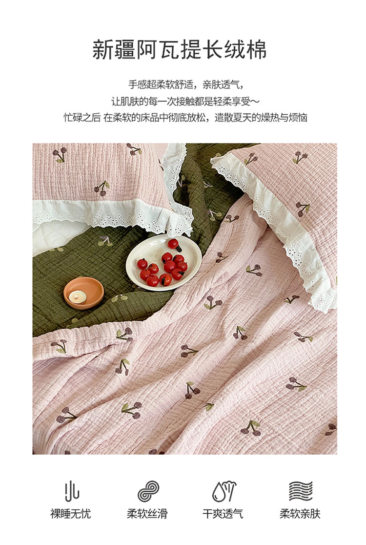 商品名称:麻依 2023新款韩系风全棉长绒棉四层纱布床盖纯棉毛巾被粉樱桃