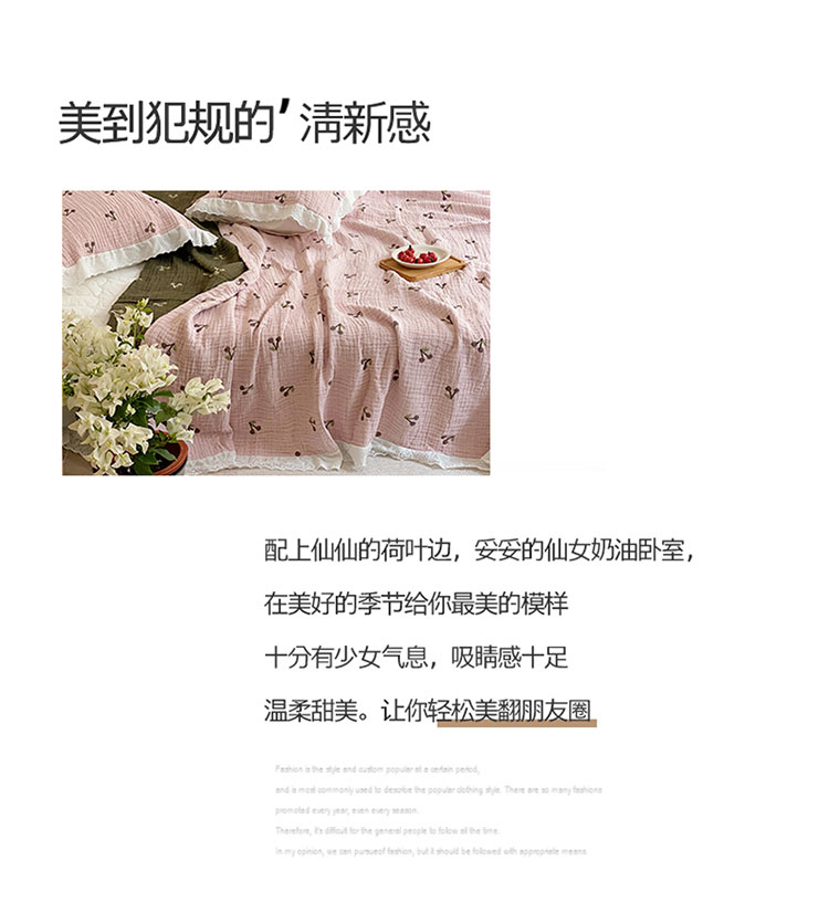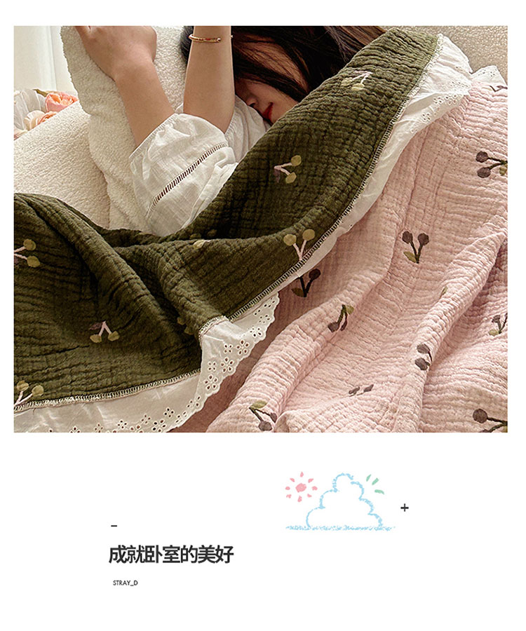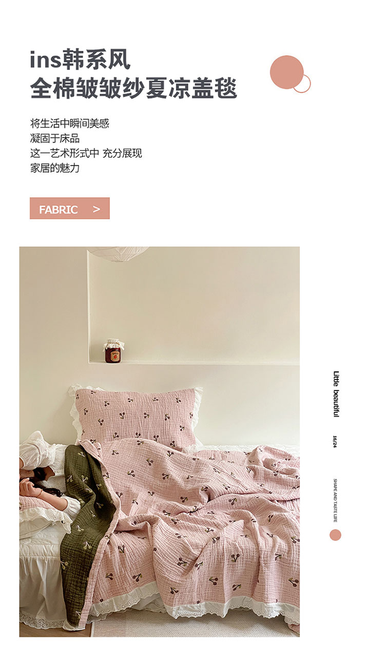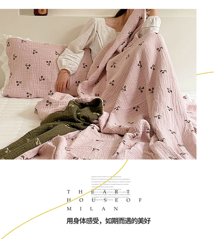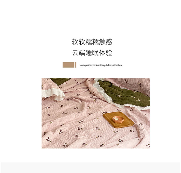 商品名称:麻依 2023新款韩系风全棉长绒棉四层纱布床盖纯棉毛巾被粉樱桃