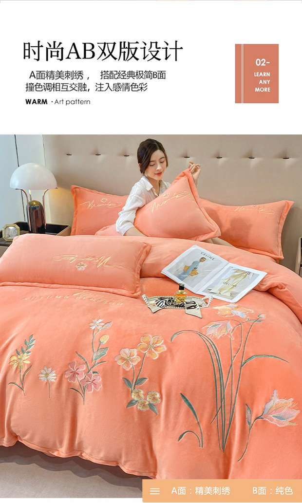 (总)漫布云2025秋冬新款全消光大版花卉平绣牛奶绒刺绣款四件套--绽放系列,绽放-艾玛橙, 绽放-豆沙红 ,绽放-樱花粉, 绽放-婴儿蓝 ,绽放-高级灰,绽放-梦幻紫