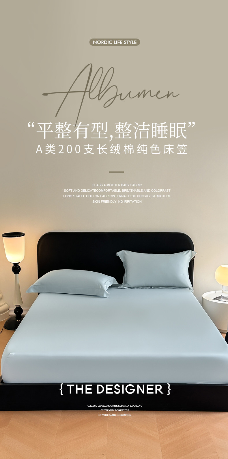 商品名称:618家纺 2023新款100支北欧长绒棉单床笠 冰蓝