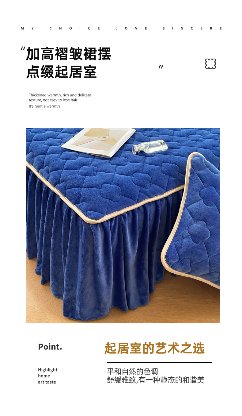 商品名称:梦舒羽 牛奶绒夹棉床裙床罩床单床盖床护垫套三件套 深海蓝