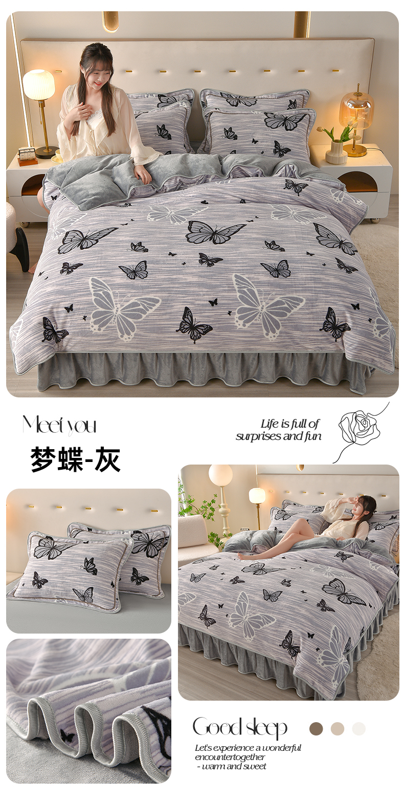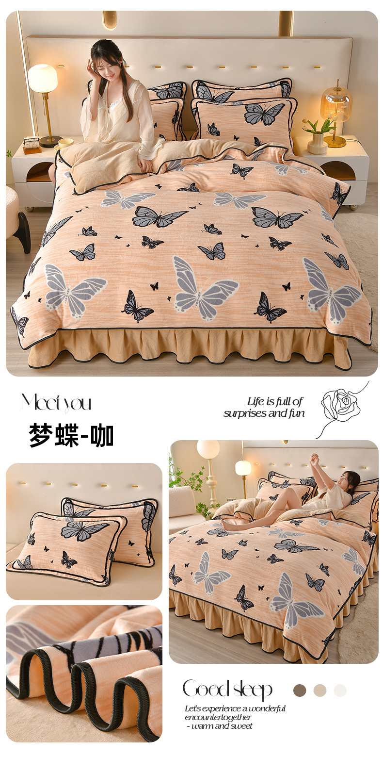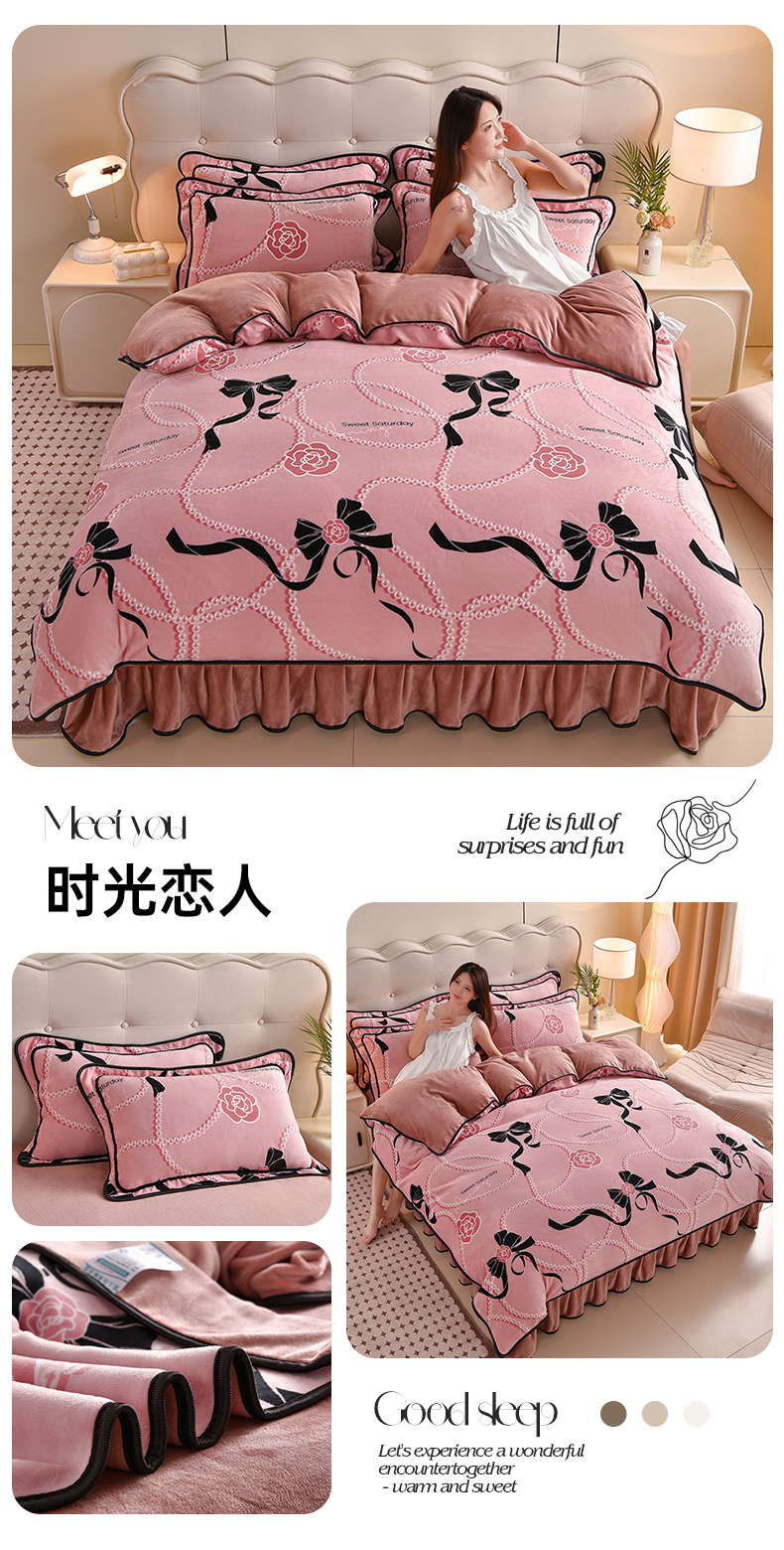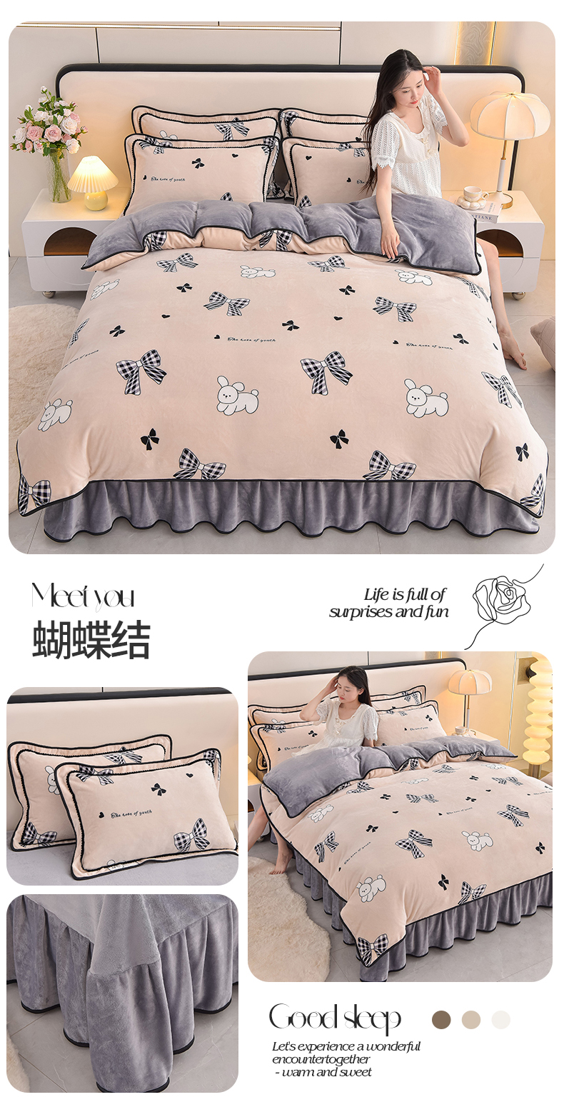佳一 2025新款高克重8-9斤印花牛奶绒四件套 蝴蝶结,蝴蝶结