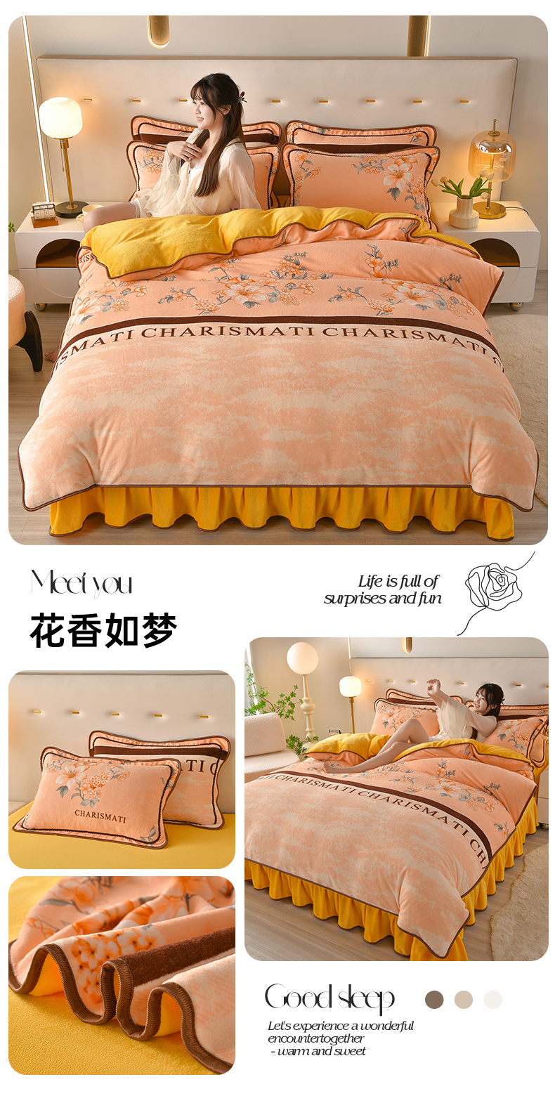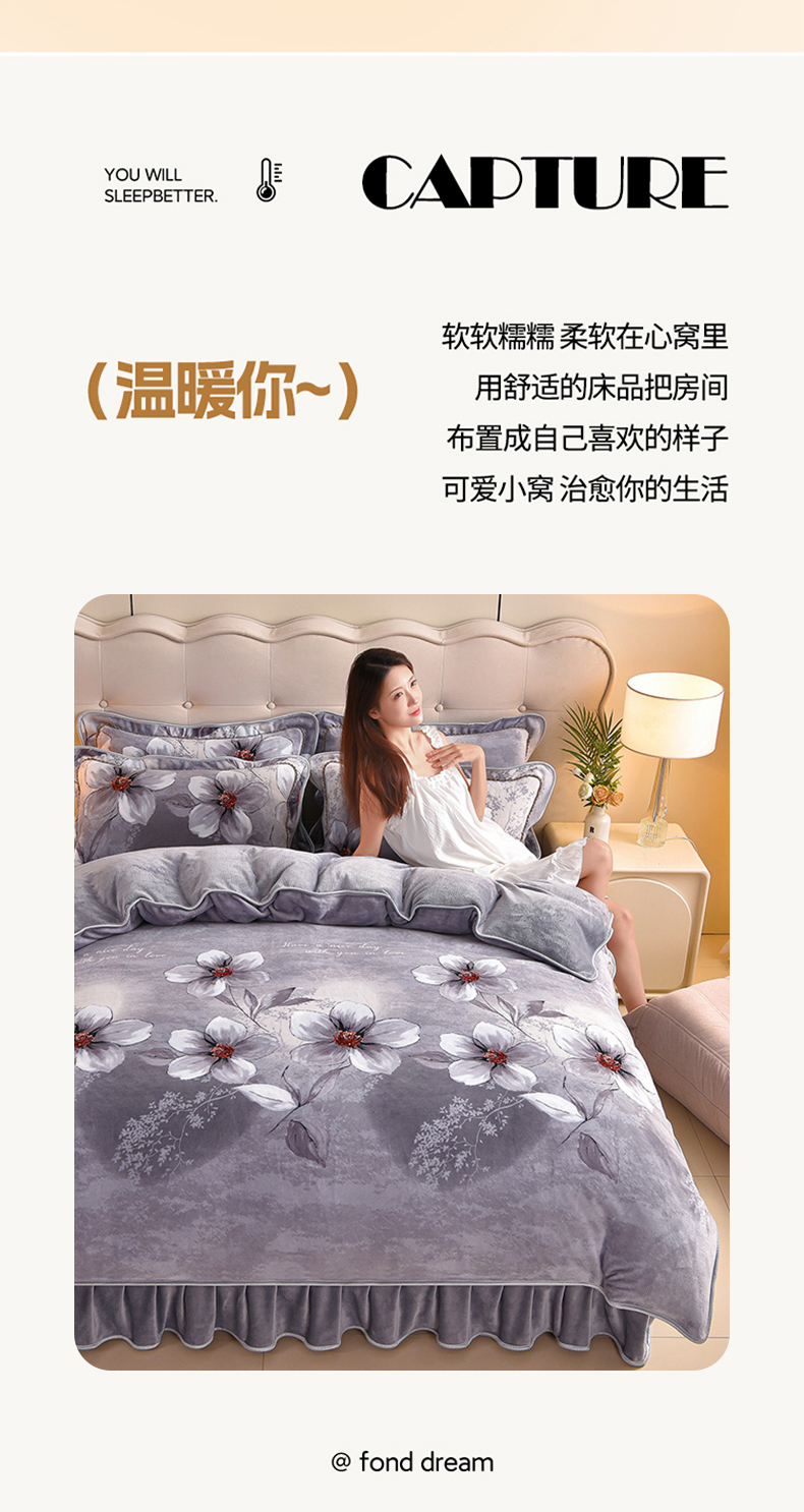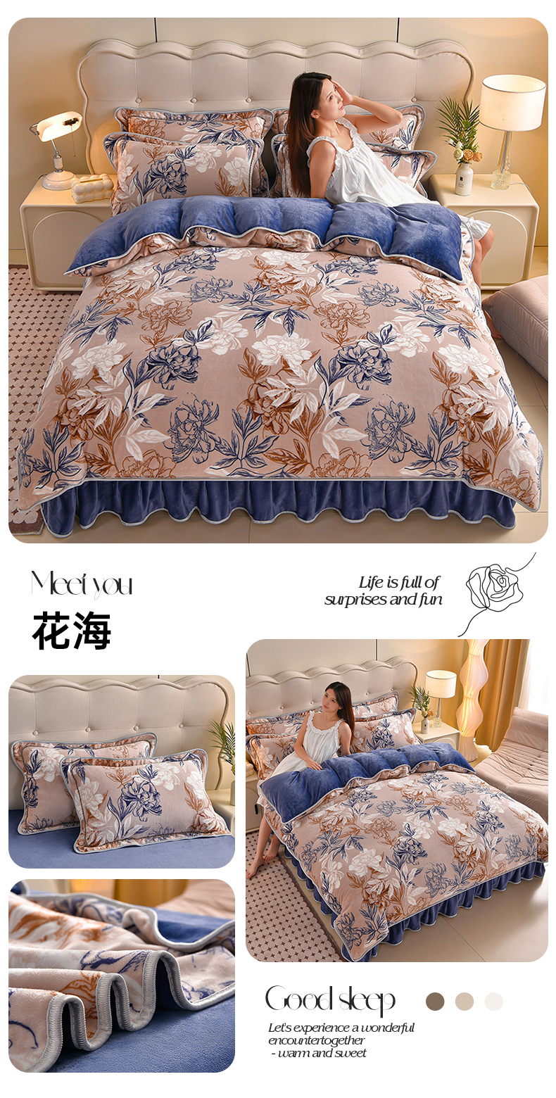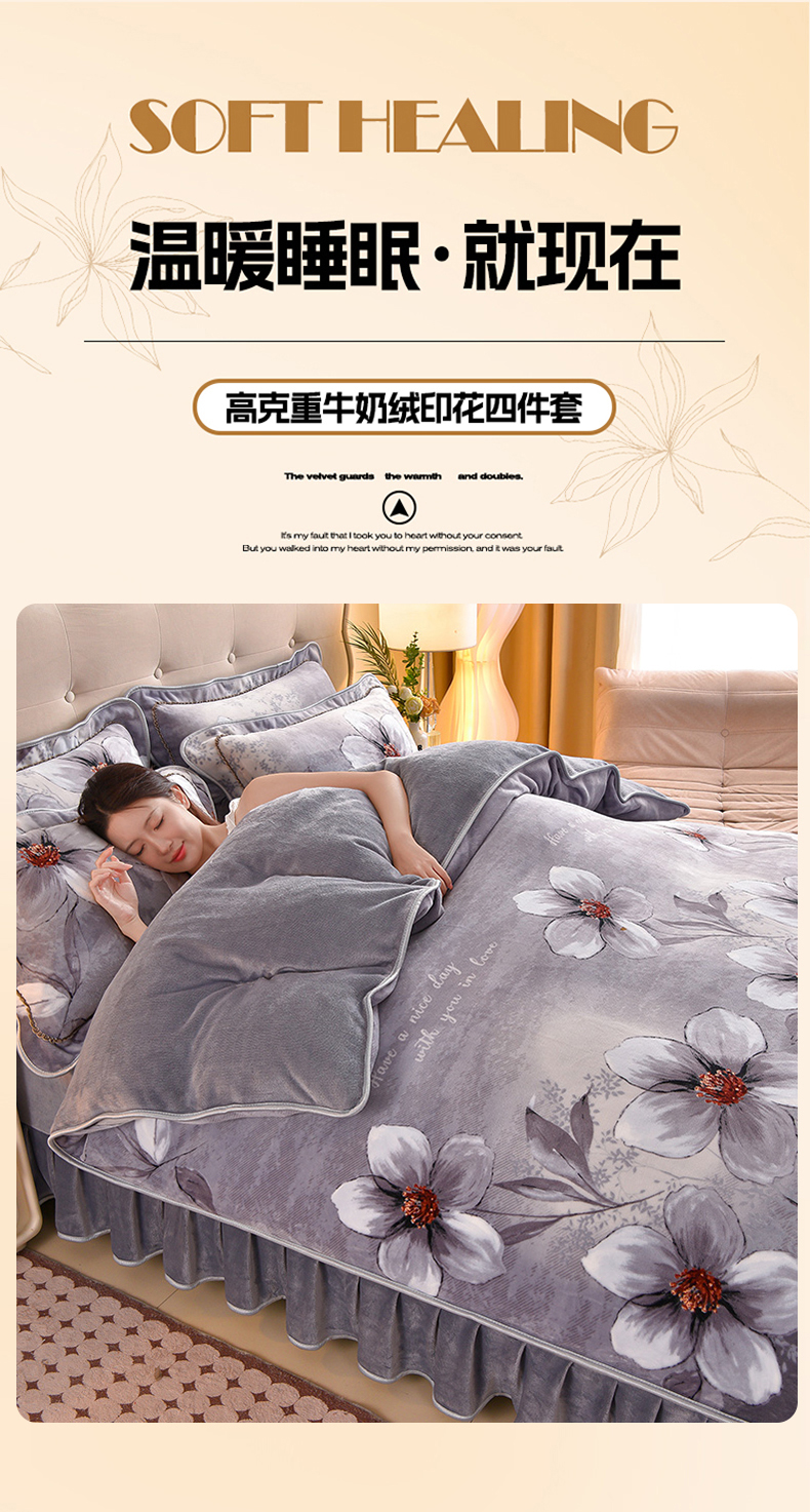 佳一 2025新款高克重8-9斤 印花牛奶绒四件套 花样情怀,花样情怀