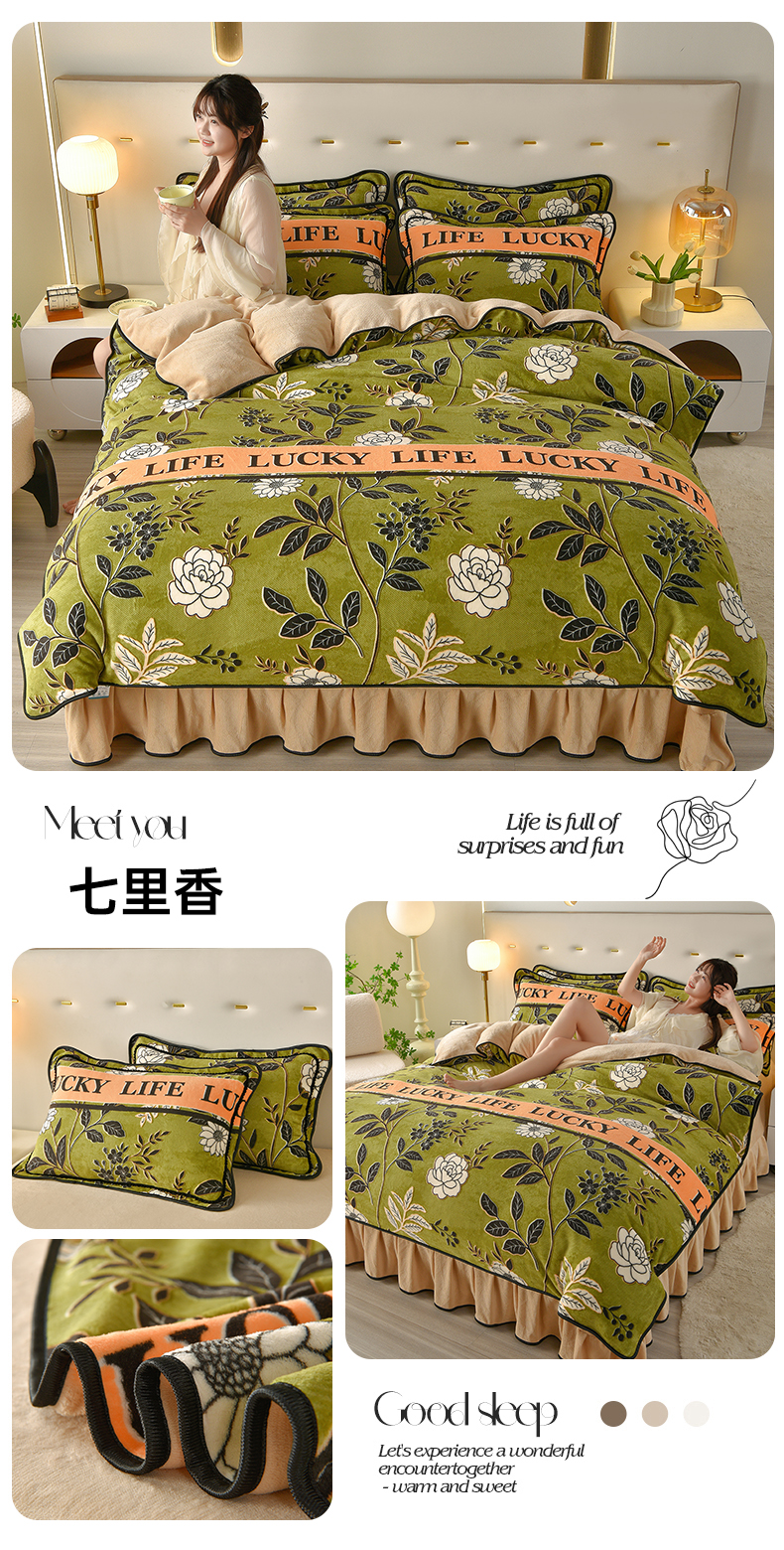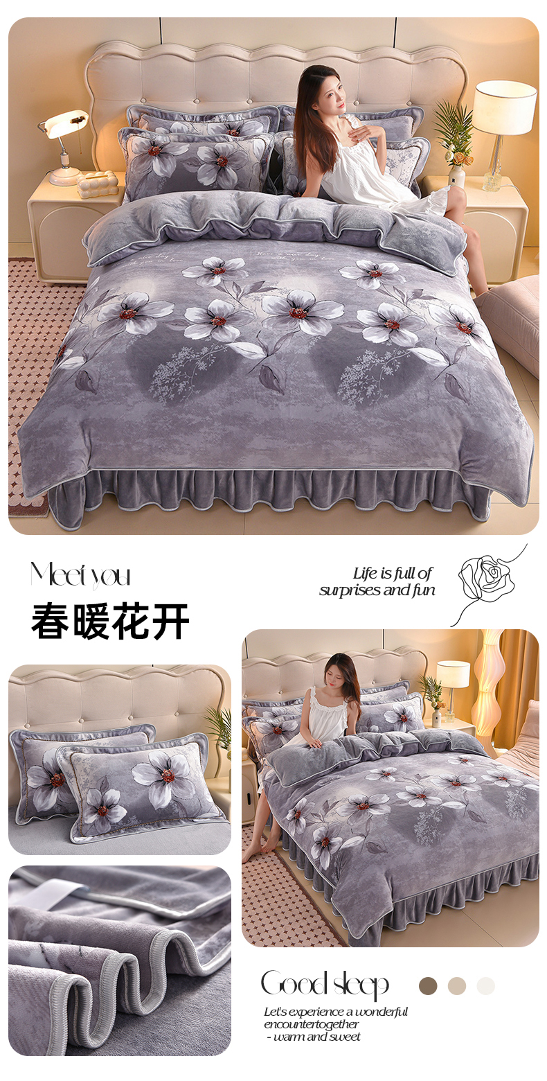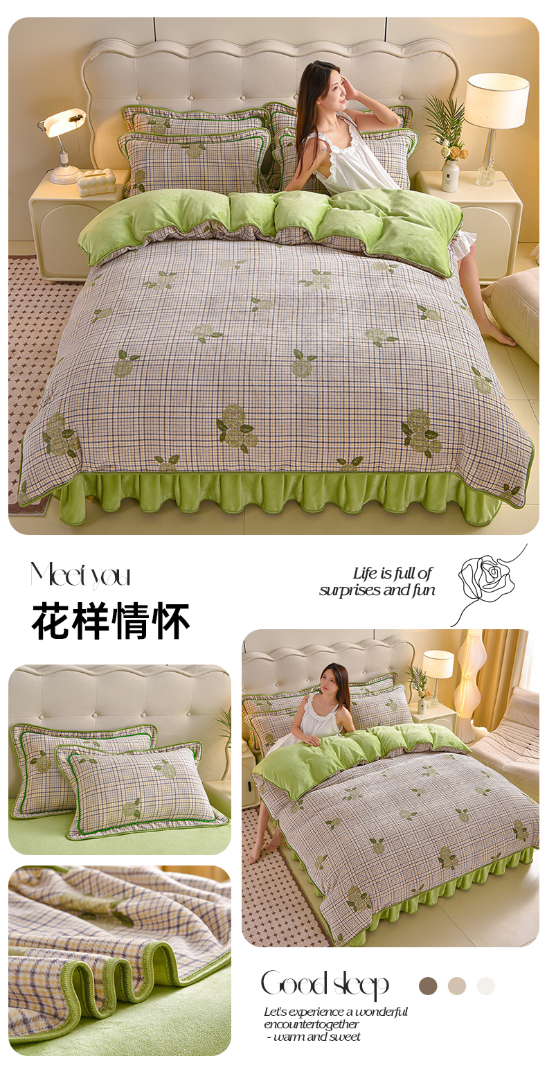 佳一 2025新款高克重8-9斤 印花牛奶绒四件套 花样情怀,花样情怀