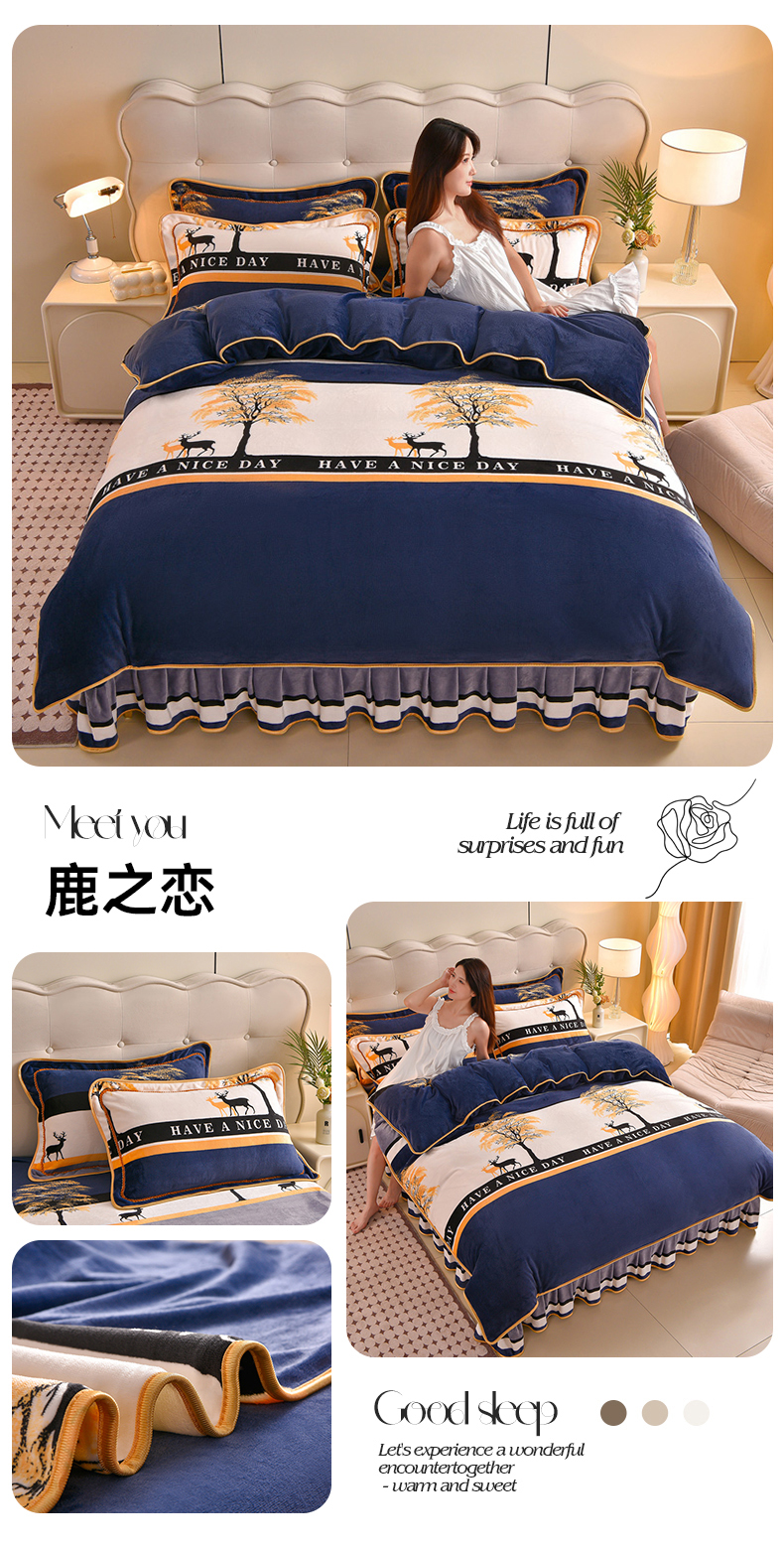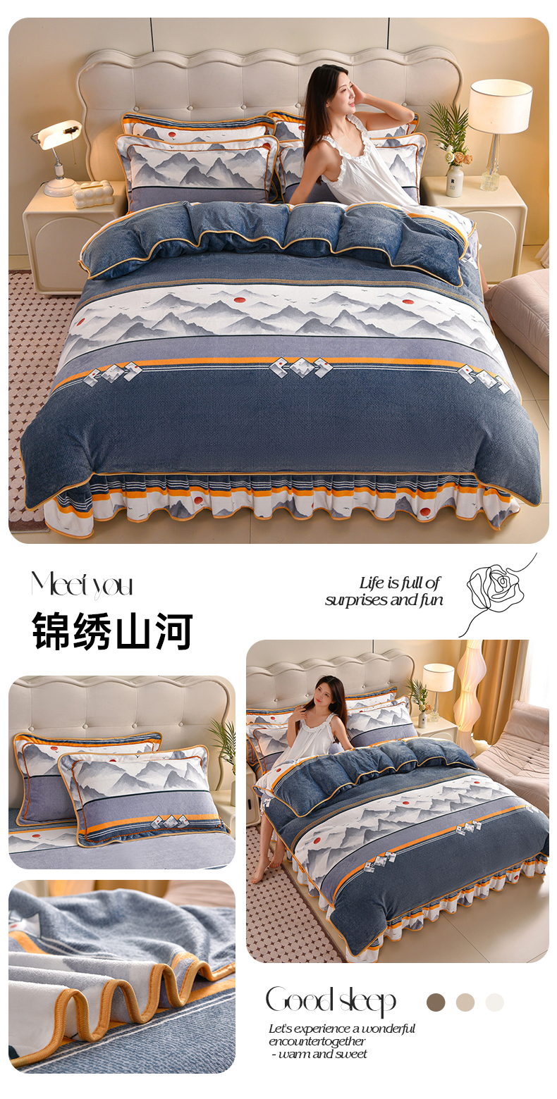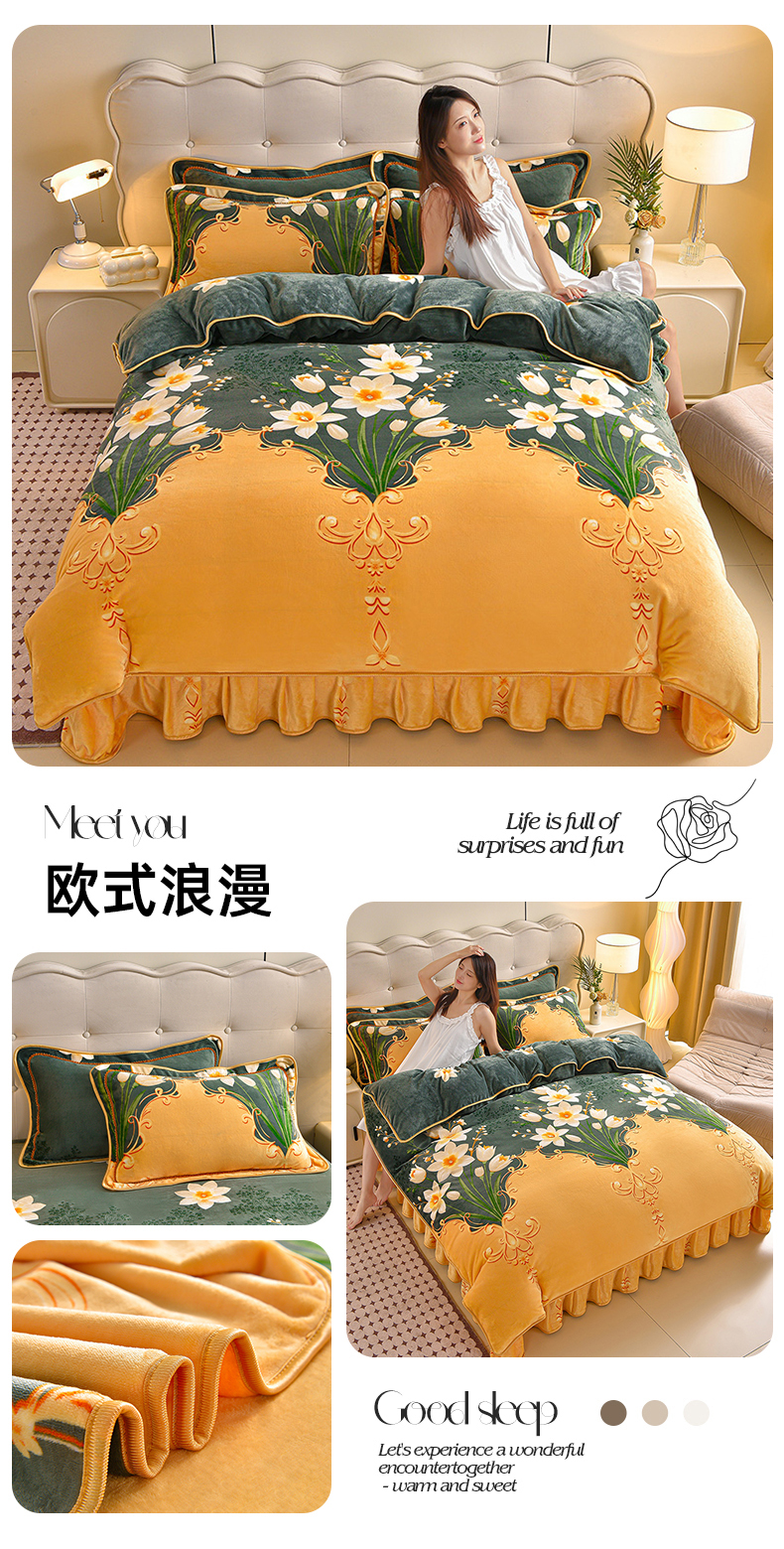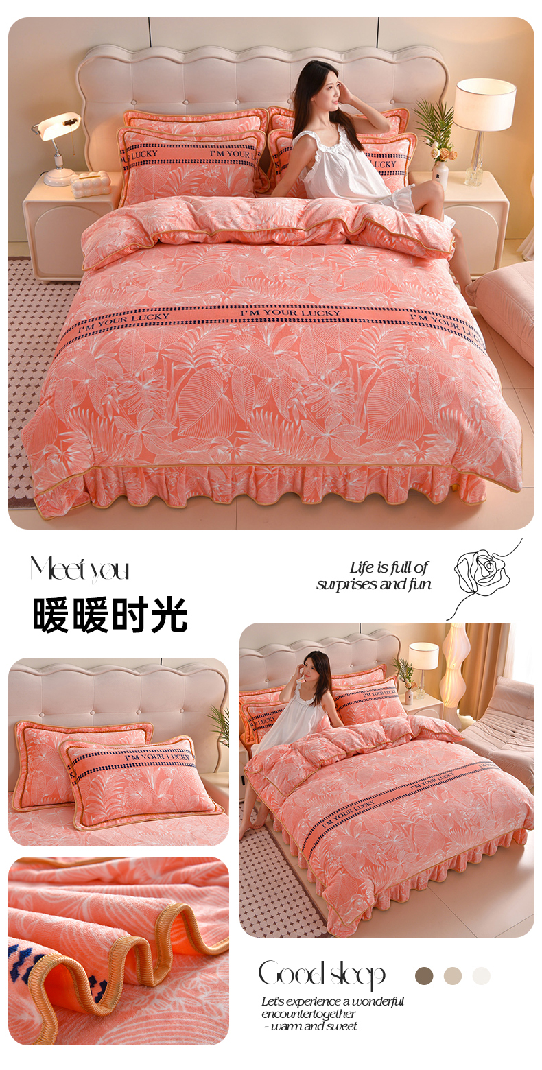 (总)佳一 2025新款高克重8-9斤印花牛奶绒四件套