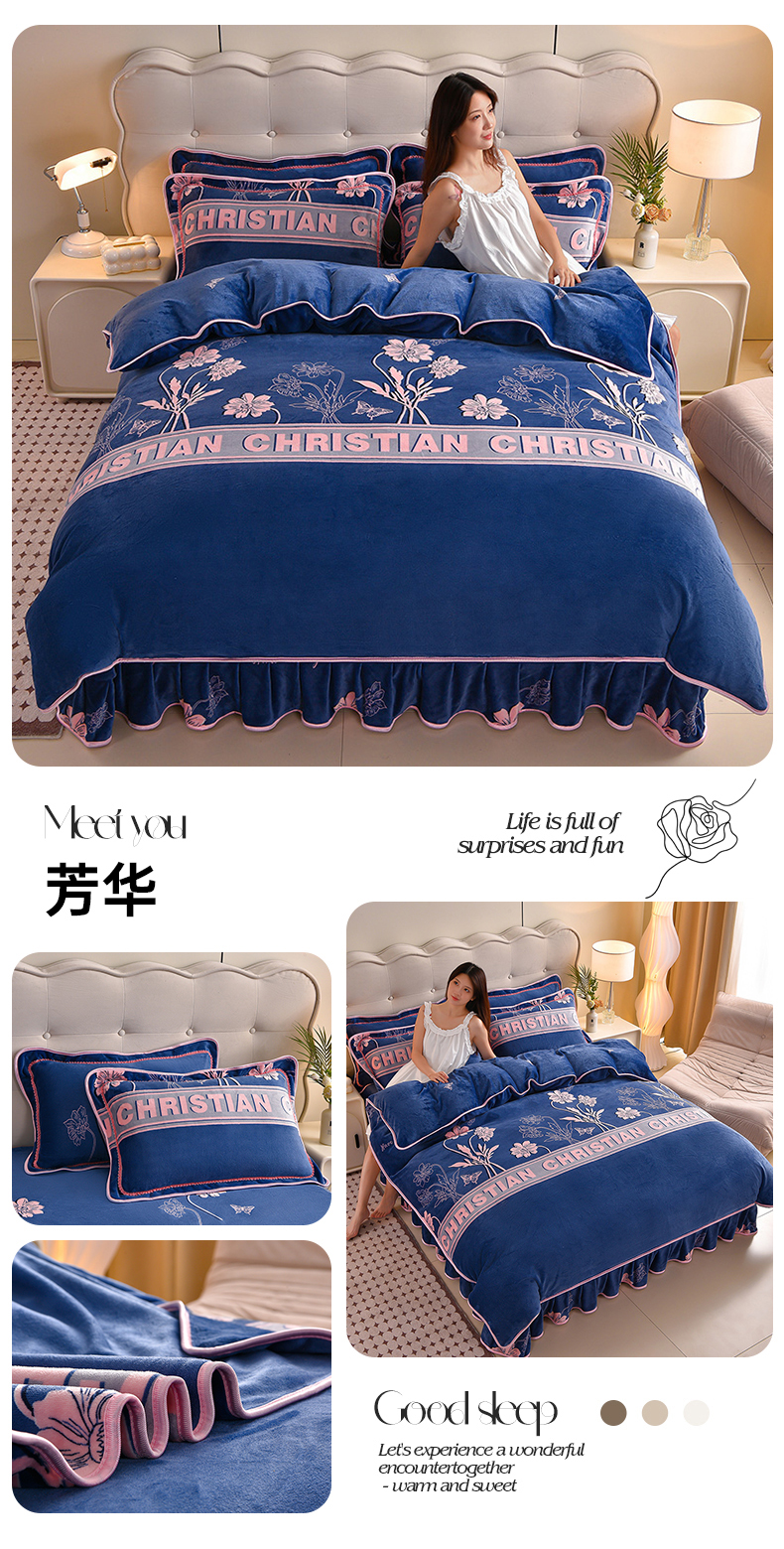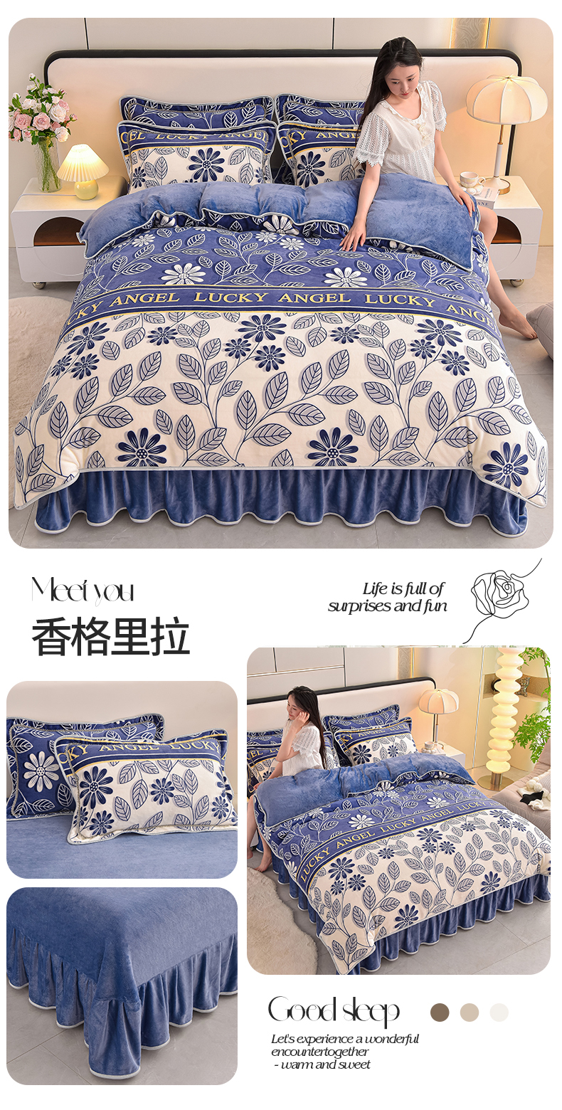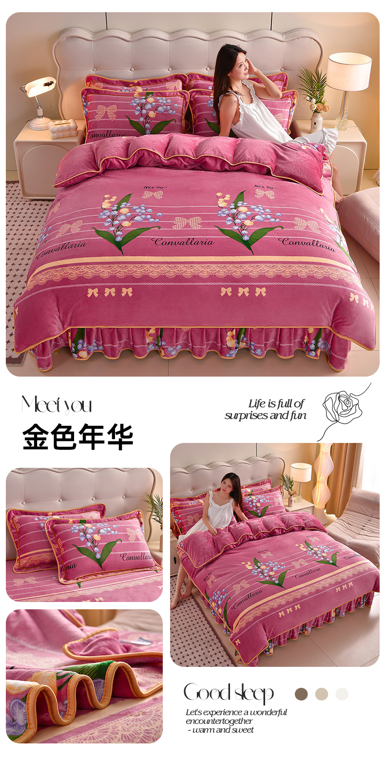 (总)佳一 2025新款赫本风牛奶绒床裙款花边四件套,布拉格,玫瑰花园,紫薇,栀子风情,樱花,印象巴黎,山茶花,米兰春天,陌上花开,罗曼花香,海棠粉,光影