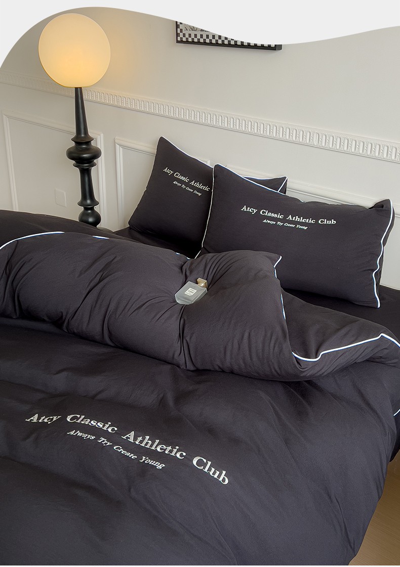 尤米 2023新款莫奈系列水洗棉绣花麻绳款单被套 莫奈-魅影黑