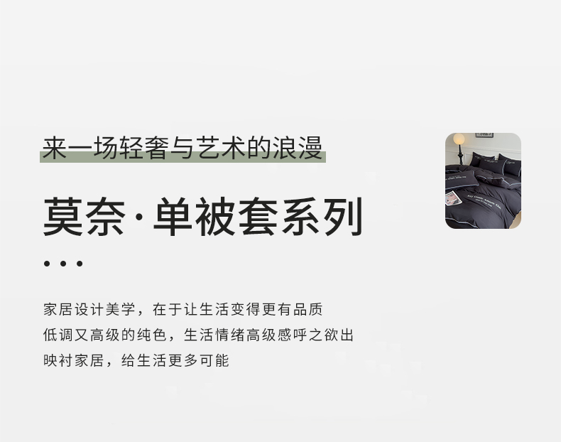 商品名称:尤米 2023新款莫奈系列水洗棉绣花麻绳款单被套 莫奈-魅影黑
