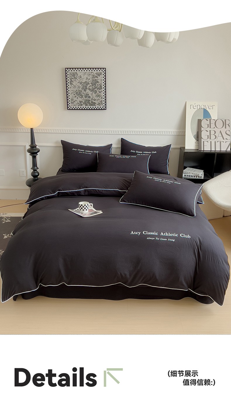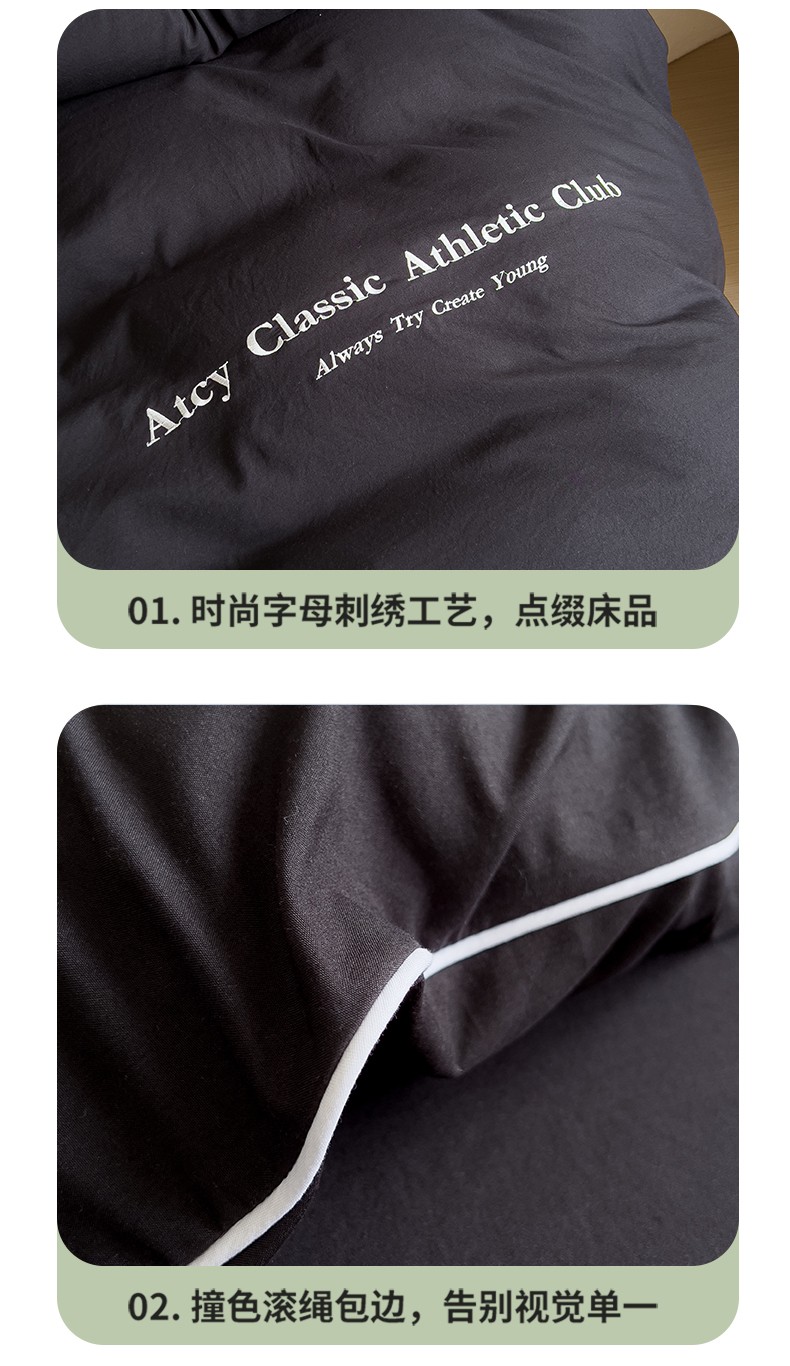 (总)尤米 2023新款莫奈系列水洗棉绣花麻绳款四件套,莫奈-魅影黑,莫奈-米杏色,莫奈-抹茶绿,莫奈-松石蓝,莫奈-月光白,莫奈-月雾灰