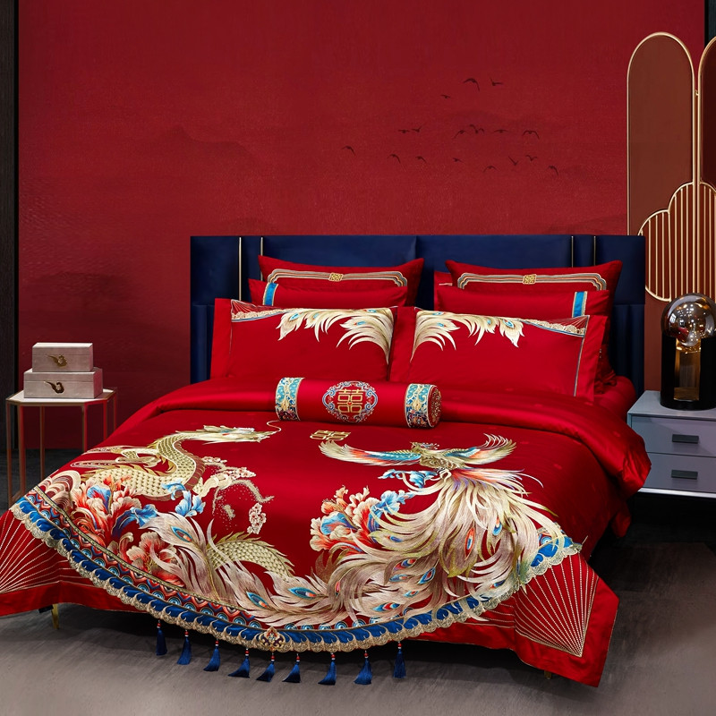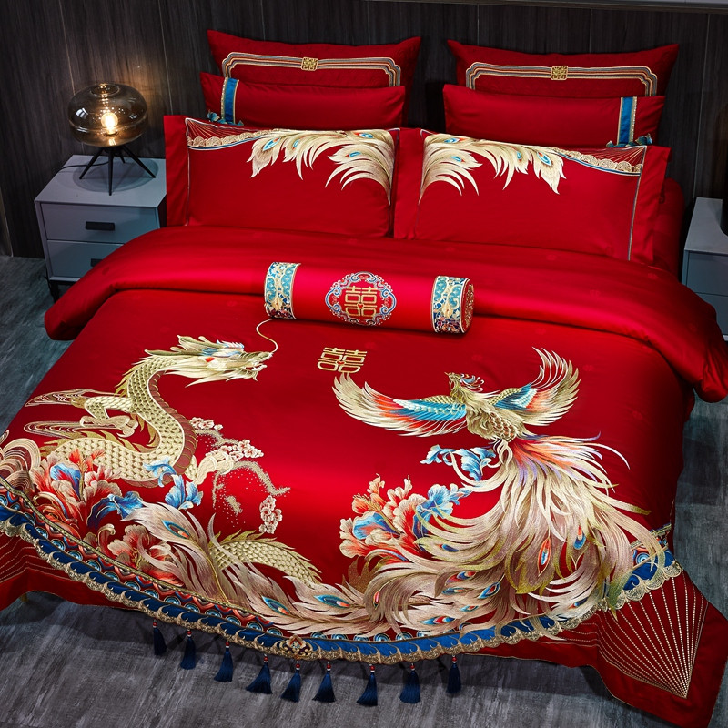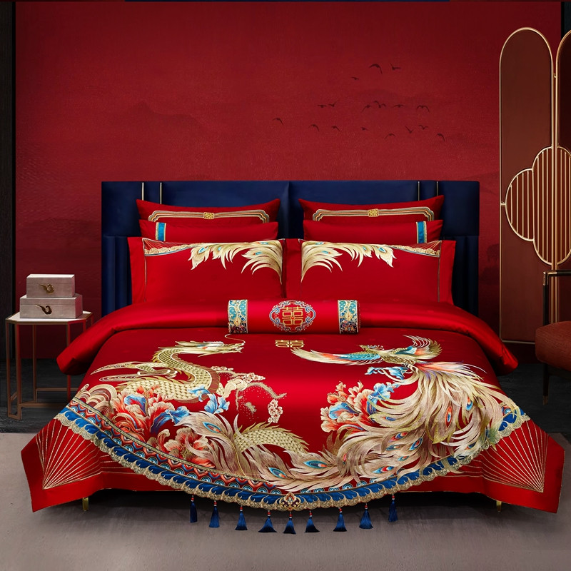 当前位置: 91家纺网 > 商品网购 > 床品套件 > 四件套 > 婚庆四件套 > 爱情故事 2025新款100支婚庆四件套棚拍龙凤呈祥