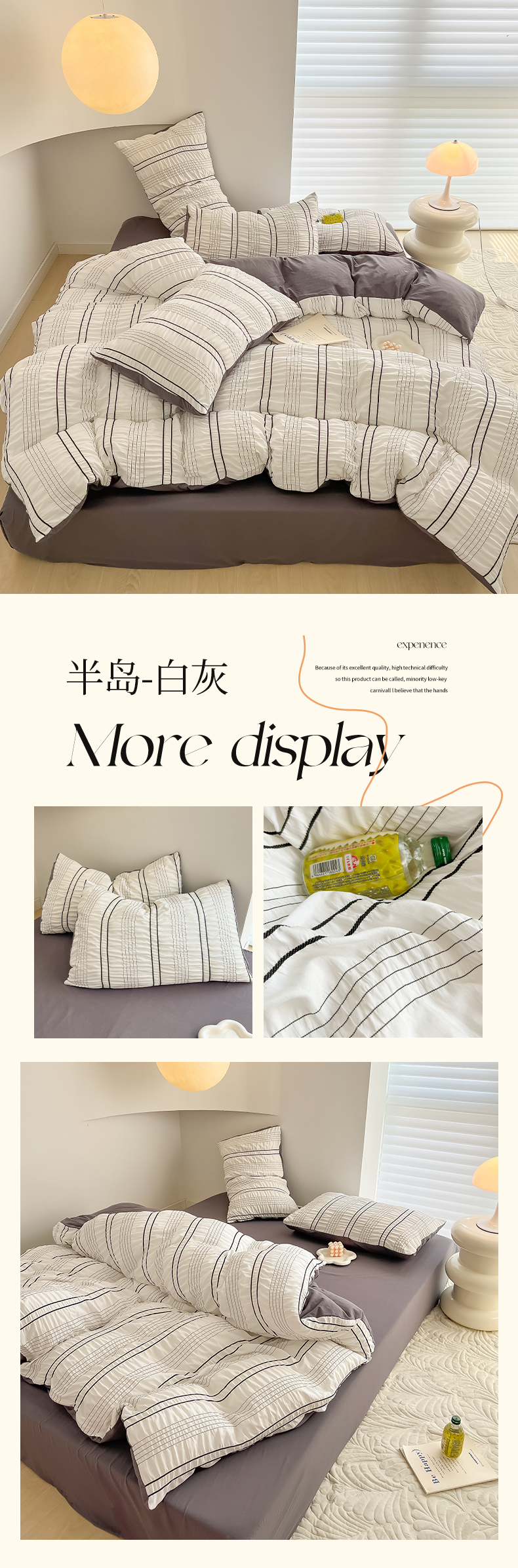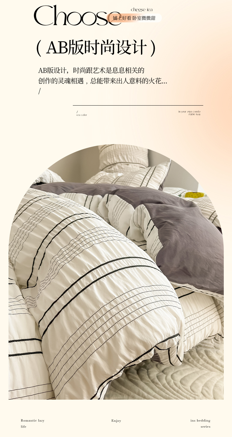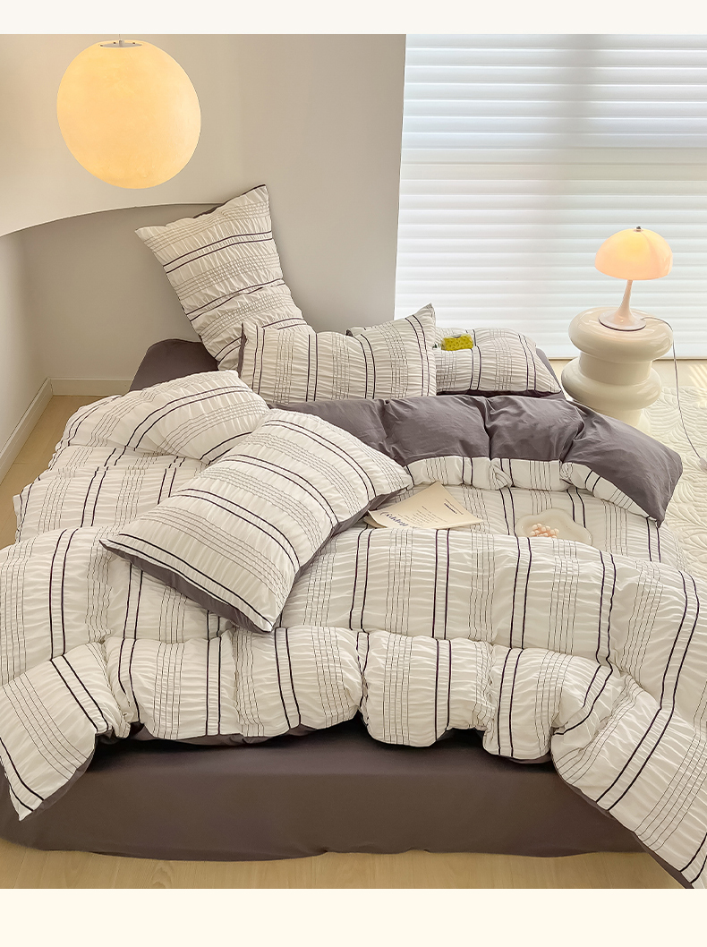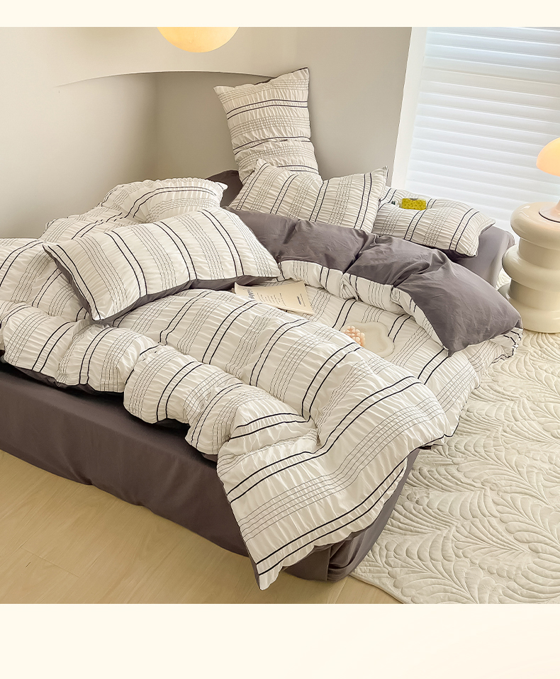 当前位置: 91家纺网 > 商品网购 > 床品套件 > 四件套 > 水洗棉四件套 > 韩都家居 2023新款A类皱皱泡泡纱水洗棉简约款纯色四件套 半岛-白灰