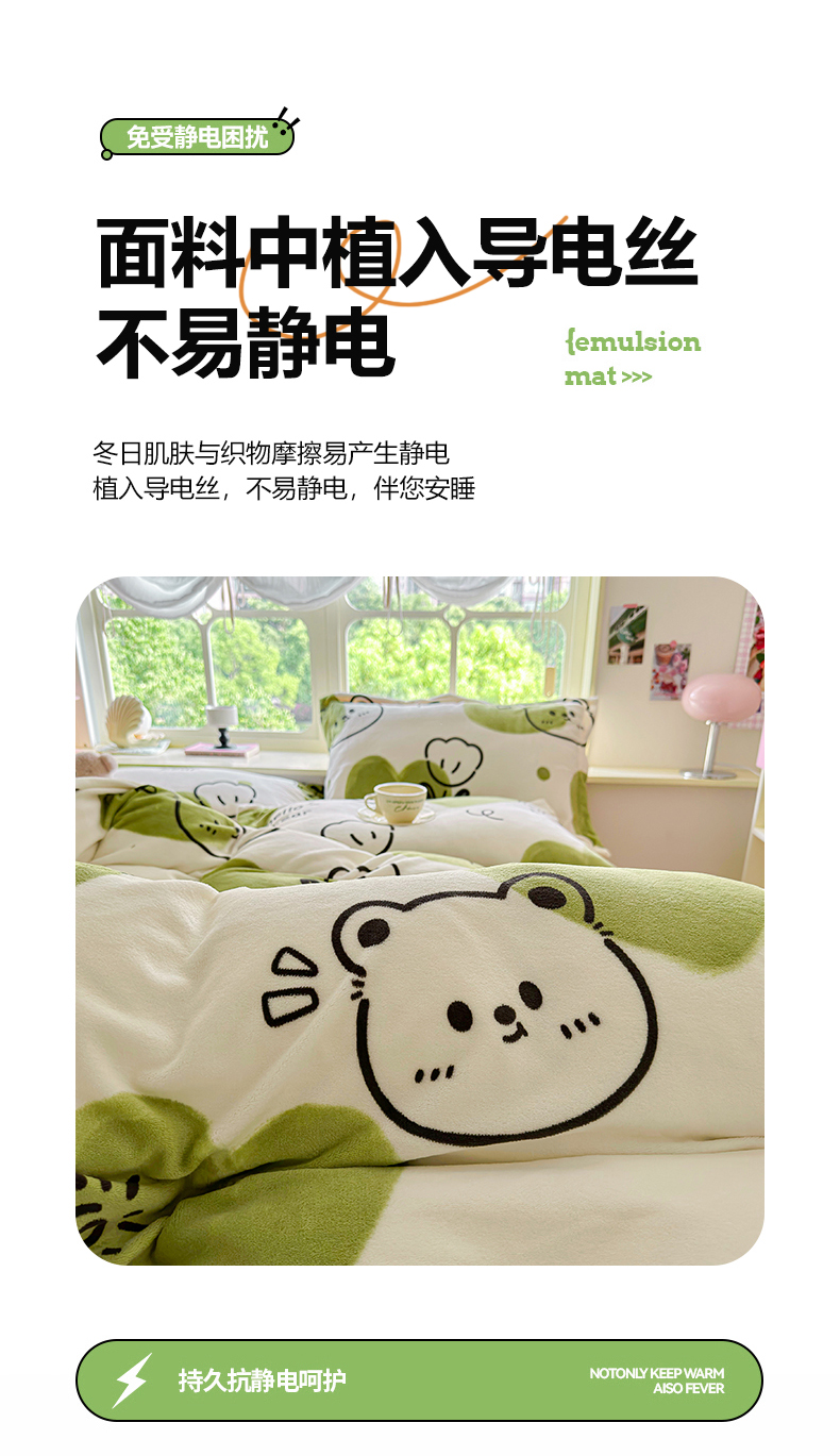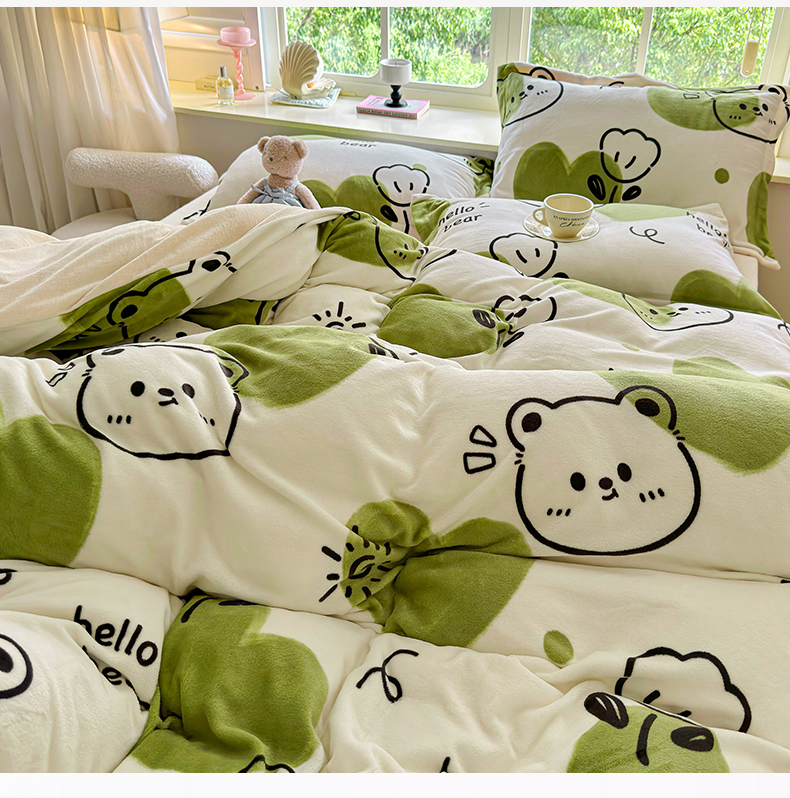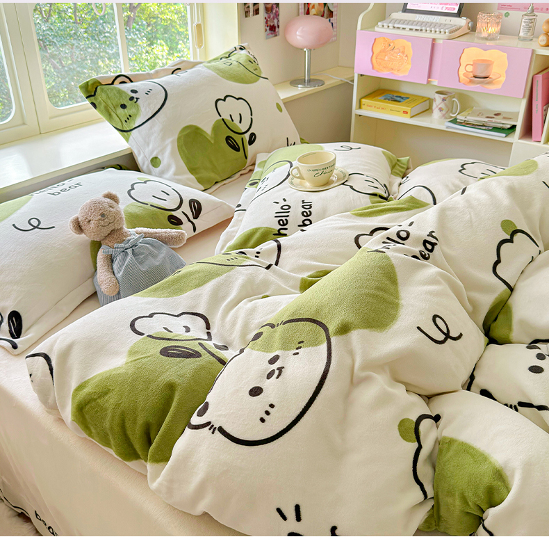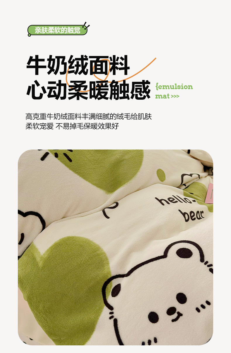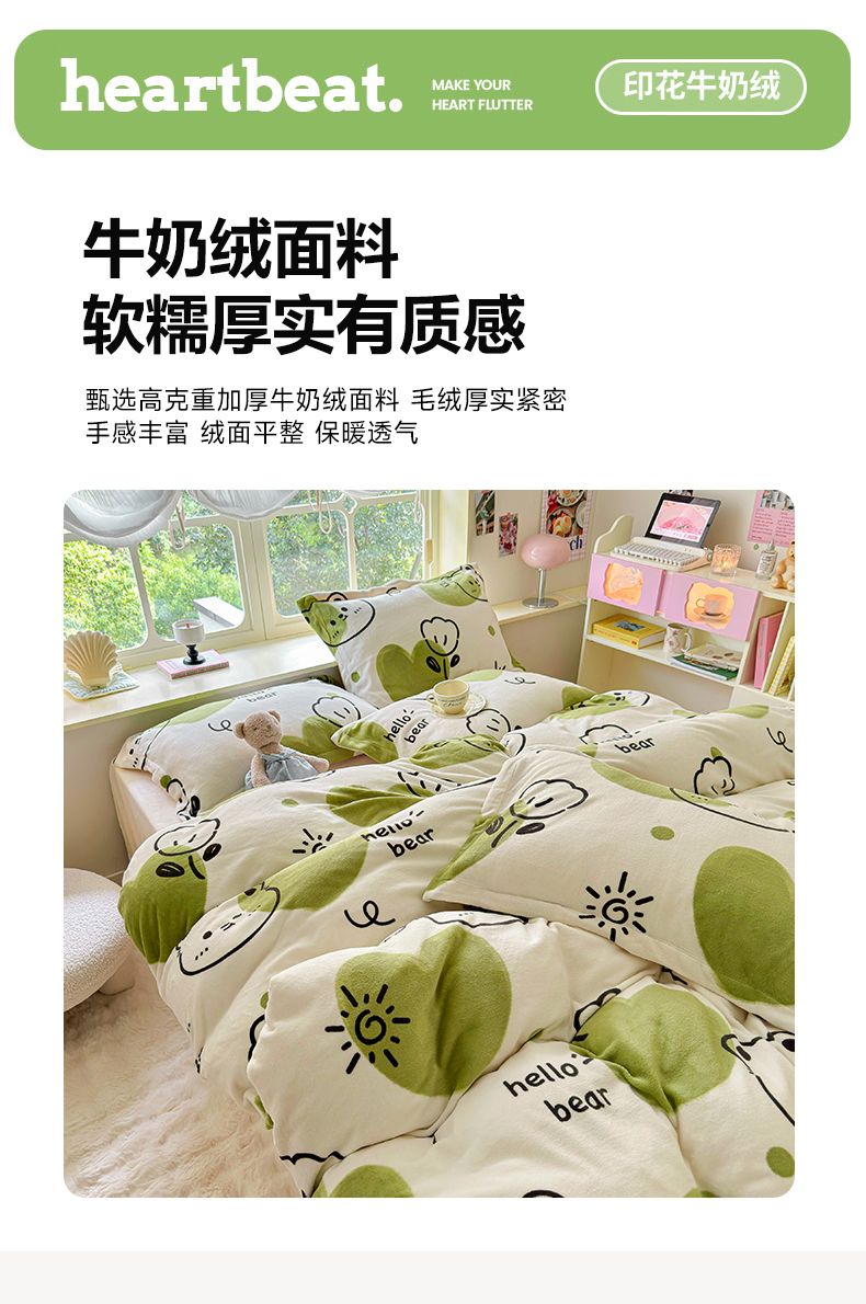 呗旺鹿 2023新款高克重加厚印花牛奶绒四件套直播 开心熊