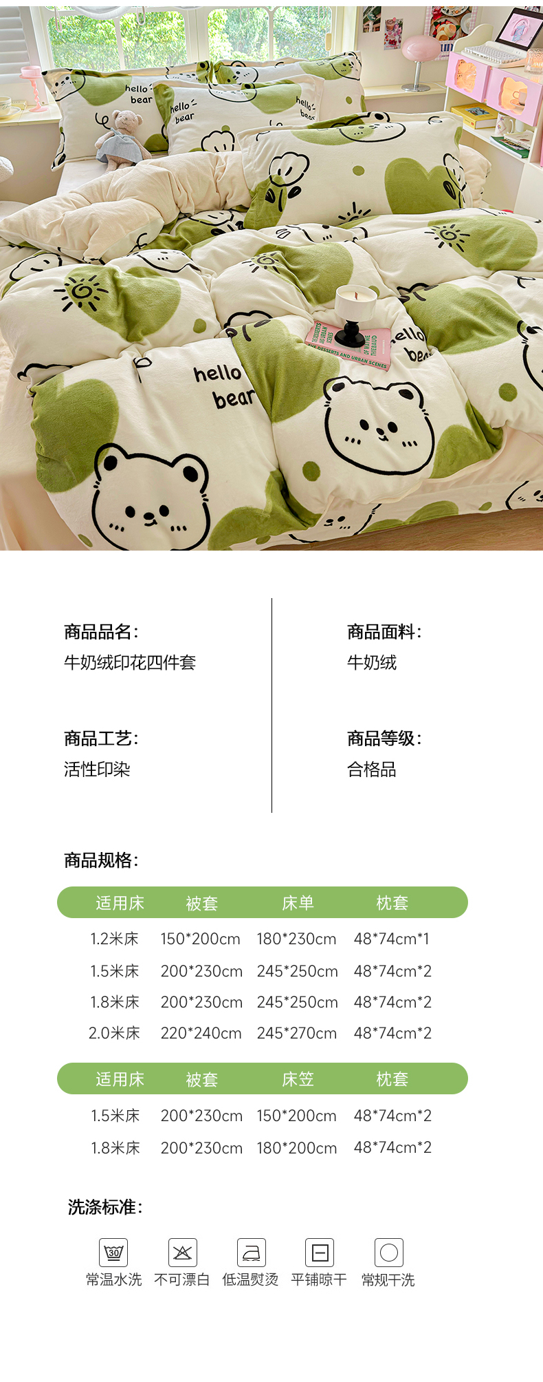 商品名称:呗旺鹿 2023新款高克重加厚印花牛奶绒四件套直播 开心熊
