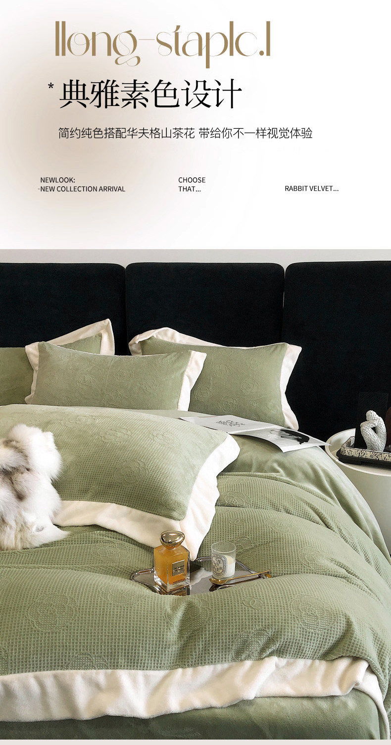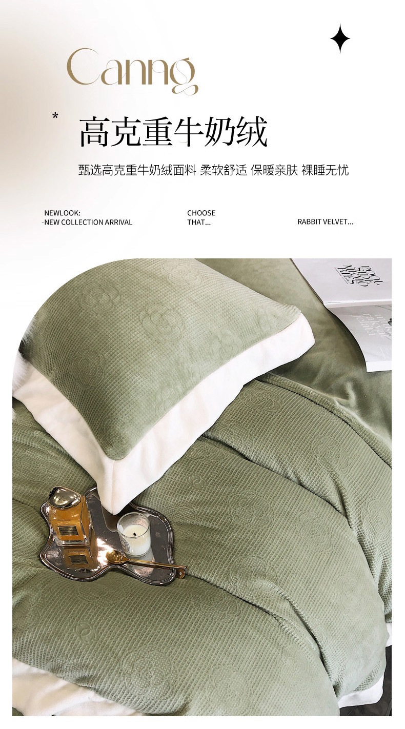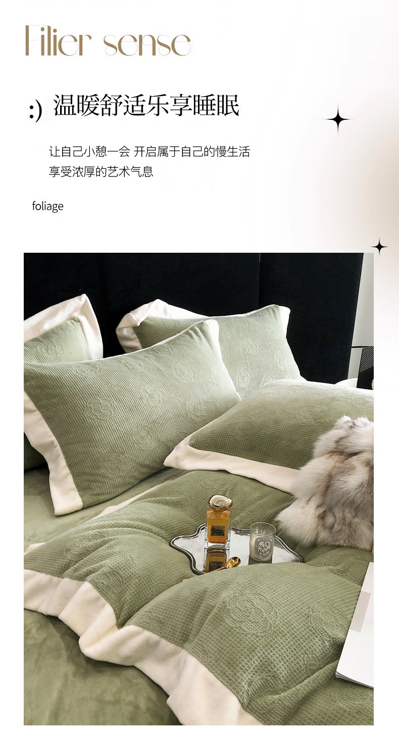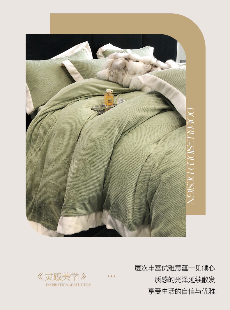 万盛家纺 2025新款小香风山茶花牛奶绒四件套 山茶花—奶油绿