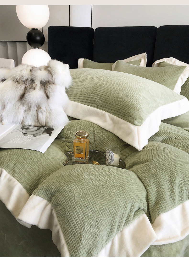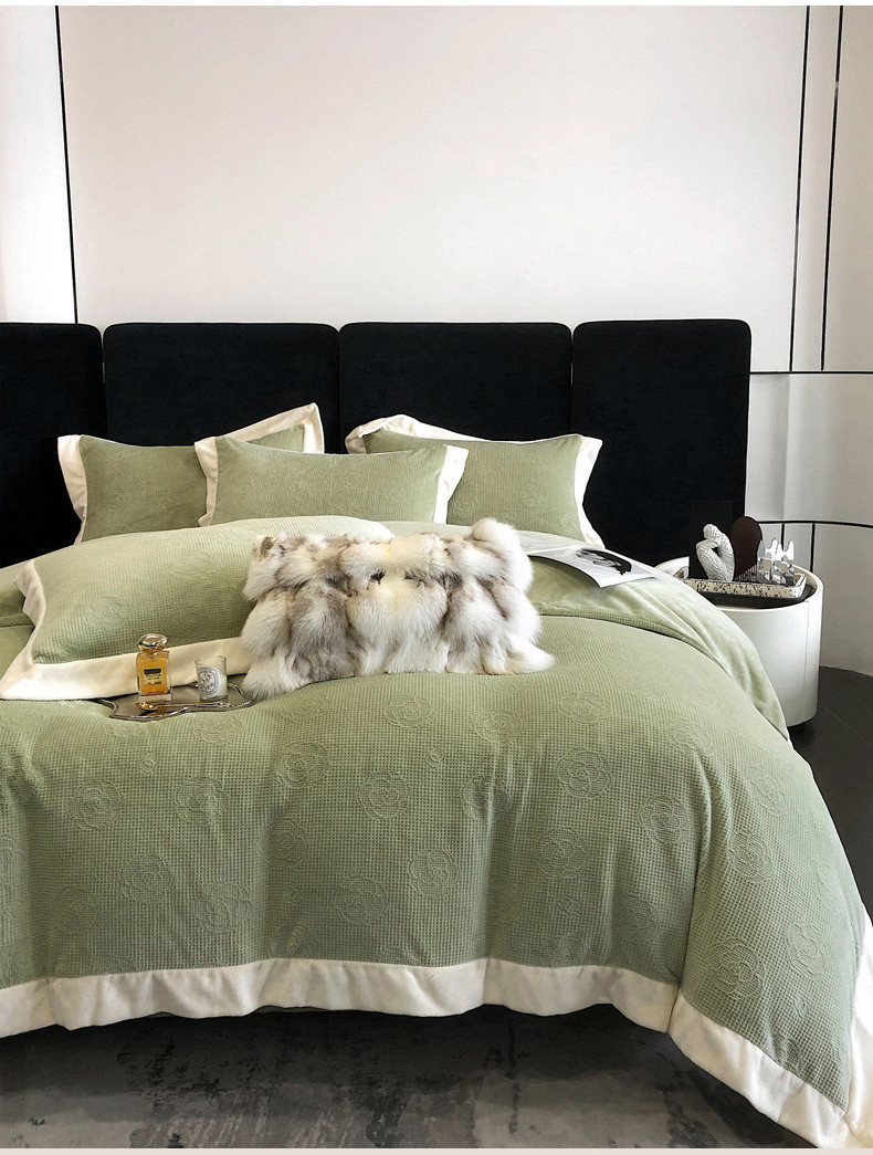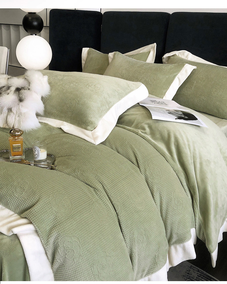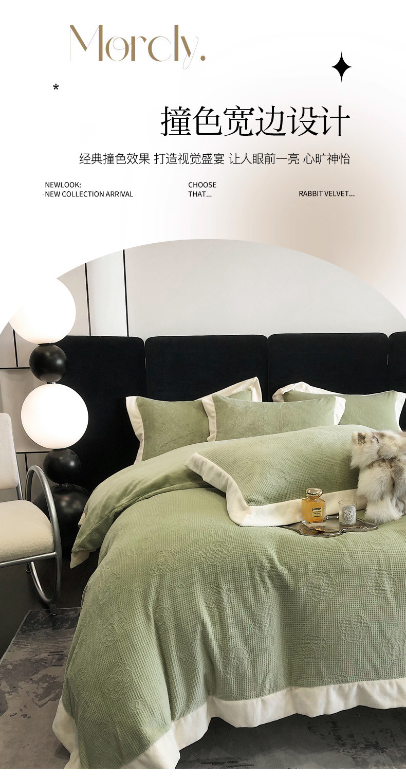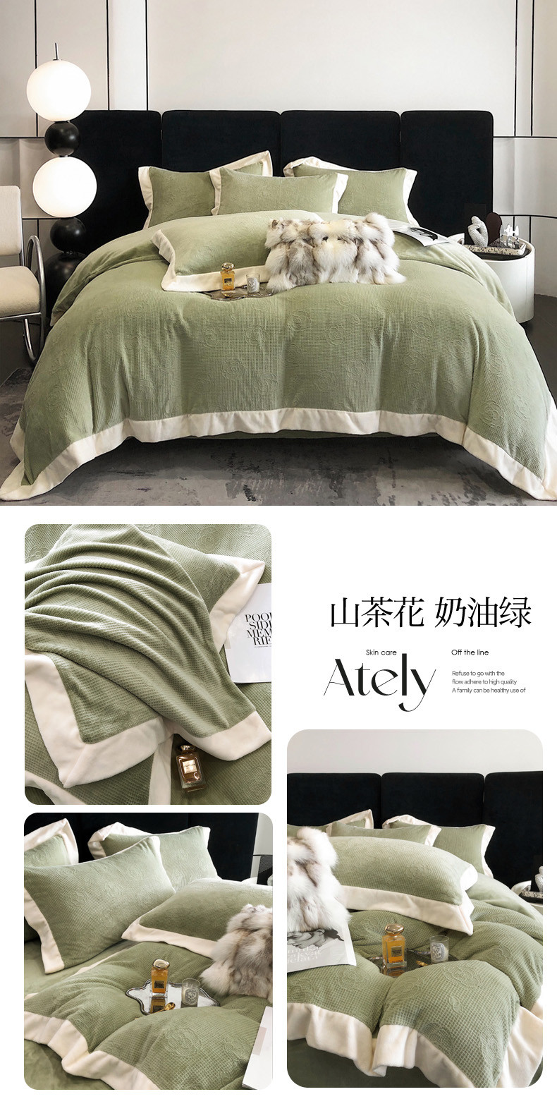 万盛家纺 2025新款小香风山茶花牛奶绒四件套 山茶花—奶油绿